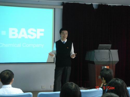 首先,梅雨博士详细向同学们介绍了BASF公司的起源、发展、业务范围以及主要产品等。BASF公司作为世界500强企业,排名第59位,是所有化工企业中的第一位,因此,BASF公司是全球最大的化工企业。随后,项超先生为同学们重点介绍了BASF公司培训生计划。按惯例,BASF公司的培训生计划是每两年招聘一次,但今年应总公司的要求以及BASF的人才需求,特地在今年继续进行培训生计划。培训生计划是BASF公司皮革部为了作好技术人员储备,在高校中选拔优秀毕业生加入到该计划之中。在为期一年半的培训期间,第一年所有的培训生都在不同的部门、车间轮训,第二年会根据培训生的特长爱好选择自己感兴趣的方向进行专门的训练,以获得全面的知识与技术。同时,还对培训期间BASF公司提供的待遇进行了说明。在宣讲会结束之后,同学们踊跃报名。