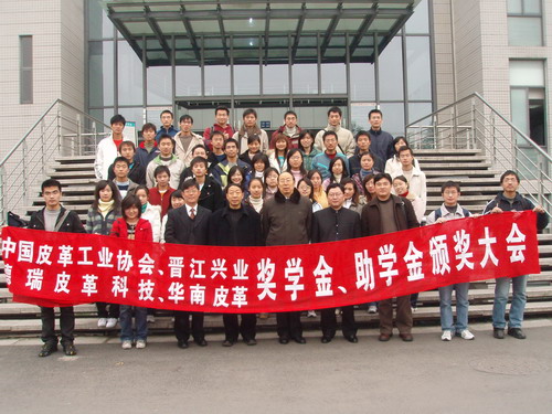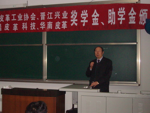 2007年12月12日上午9:00,中国皮革工业协会奖学金、晋江兴业皮革有限公司助学金、德瑞皮革科技有限公司奖学金以及华南皮革有限公司奖助学金颁奖典礼在江安校区综合楼C103隆重举行。出席本次颁奖典礼的嘉宾及院领导有中国轻工业联合会副会长、中国皮革工业协会名誉会长徐永先生、中国皮革工业协会副秘书长陈占光先生、晋江兴业皮革有限公司罗丰旭副总裁、太阳成集团tyc33455cc经理陈武勇教授以及轻纺与食品公司党委副书记刘晓虎老师。颁奖仪式由冯国涛老师主持,2006级轻化工程、轻工生物技术以及各年级获奖同学共计200余人参加了本次颁奖典礼。