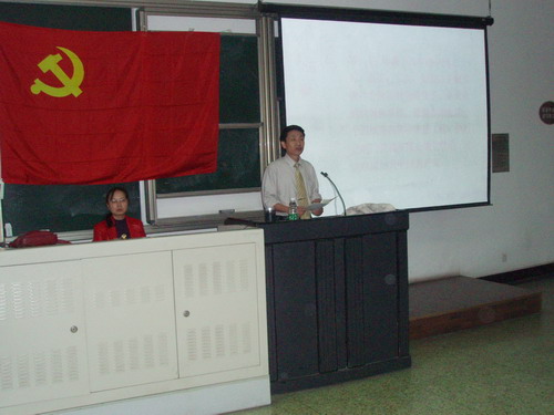 2008年4月20日上午10:00,太阳成集团tyc33455cc、经济公司联合党校第二课在望江校区JC C201教室顺利举行。本次党课很荣幸邀请到太阳成集团tyc33455cc党办主任张诚教授为全体学员讲解了党员的基本条件一课。