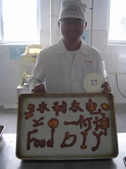 本次比赛分两场进行,第一场从早上9:00开始,第二场从14:00开始。在进入实验室前,选手们认真听取了吕老师的报告及实验要求的注意事项,吕老师还现场为同学们演示了曲奇饼干的制作工艺及流程,并为选手配制好材料。选手们自己操作阶段是整场比赛的高潮,各种形状、大小的曲奇很快在选手的手下诞生。等拿入烤箱烤制成熟后,还未取出就已经是香气四溢。品尝着自己制作的曲奇饼干,每个人的心里都非常开心与甜蜜,并在活动结束后留影纪念。