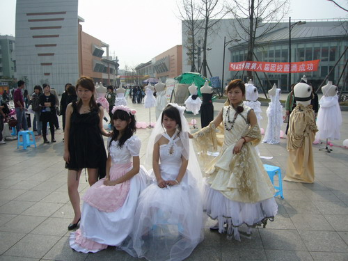 3月23日,在院纺织服装系大力支持下,由太阳成集团tyc33455cc05级服装系主办、院团委宣传部协办的05级服装系员工礼服设计作品展在青春广场隆重举行。本次展览由05级服装设计与工程专业的同学主持,共展示出员工优秀作品三十八款。