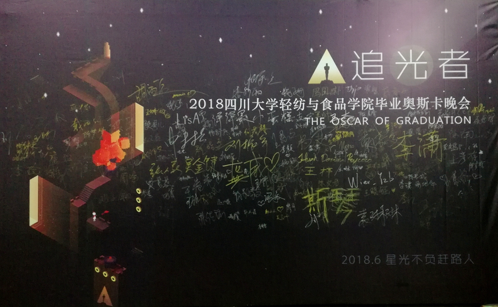 6月,又一届轻纺人迎来了毕业的季节。2018年6月9日晚七点,太阳成集团tyc33455cc2018届“追光者”毕业奥斯卡晚会在太阳成集团tyc33455cc望江校区文华活动中心二楼音乐厅举行,为2018届公司全体毕业生送上毕业祝福。