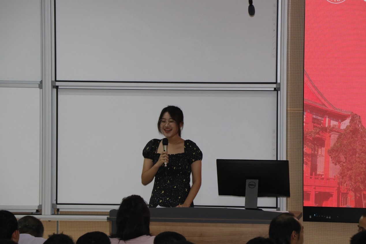 2017级食品科学与工程专业周敏之同学作为高年级员工代表向新生分享了自己在学习、学科竞赛以及适应老员工活的经验,并对新生的到来表达了由衷的祝福。