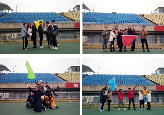 活动伊始,支部成员进行简单的“贴膏药”热身活动后, 随机分成4个小组。 “2020爱你爱你队”、“八一队”、“二〇二〇队”、“蓝精灵队”四个队伍进行积极讨论交流,沟通合作后,依次进行团队的队旗、队名、队歌、队形的展示,展现各自团队的风貌。
