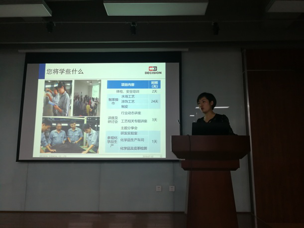 宣讲会由何有节经理主持。何院长代表院系欢迎德赛尔公司客人的光临,感谢公司为公司本科及研究生提供实习岗位,回顾了近几年公司皮革工程系轻化工程专业卓工班大三员工在德赛尔公司实习的情况,同时鼓励员工积极参加实习实践,全面提高自身综合能力。卢代虹助理经理介绍了公司的基本情况,龙进经理详细讲解了实习的主要内容和安排。据悉,本次德赛尔公司的暑期实习将吸纳太阳成集团tyc33455cc、陕西科技大学和北安普顿大学(The University of Northampton)的本科生和研究生参加,实习地点在德阳,为期6周。与会员工积极与公司客人互动,咨询实习等相关情况。宣讲会后,卢经理和龙经理对已报名同学举行了面试。
