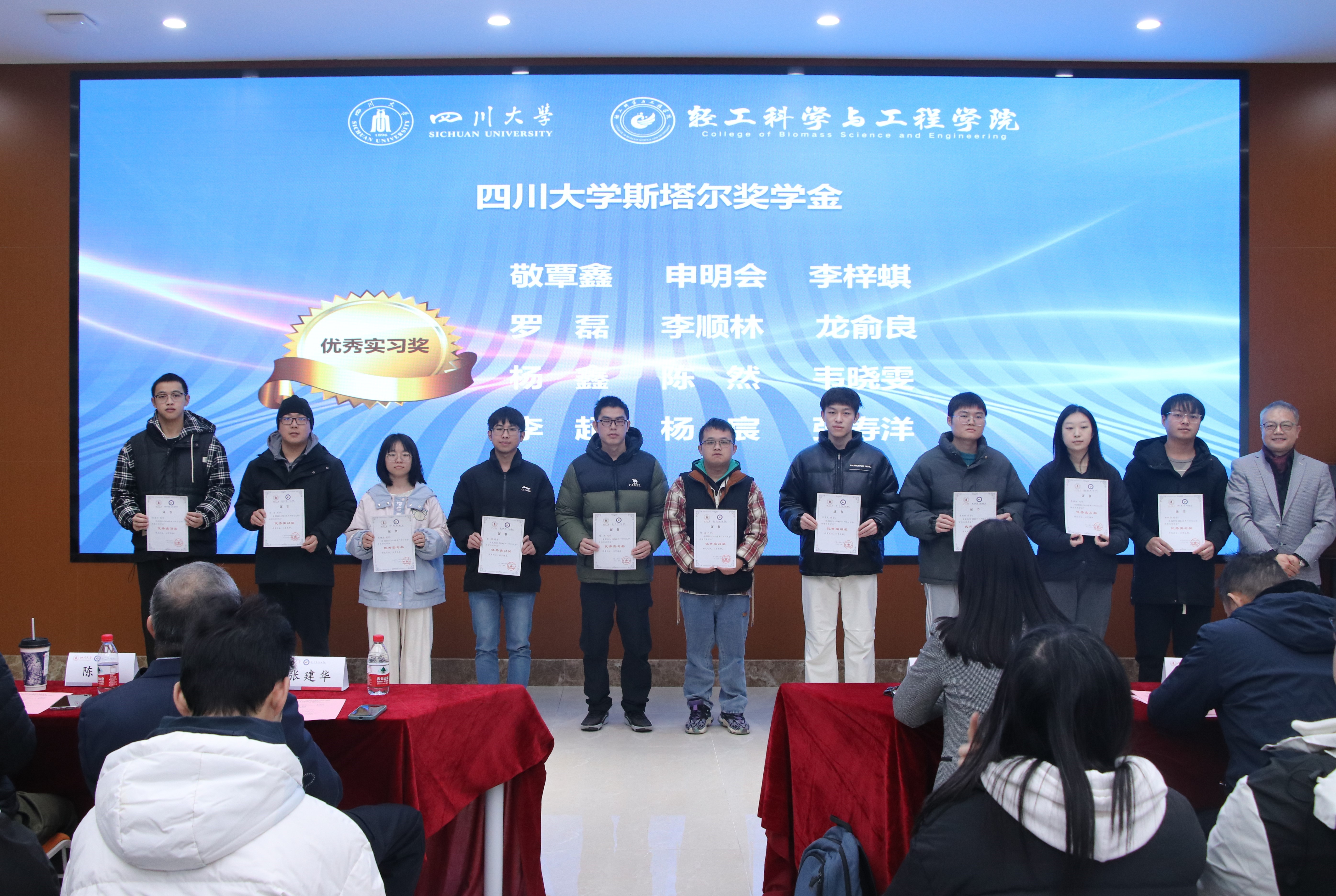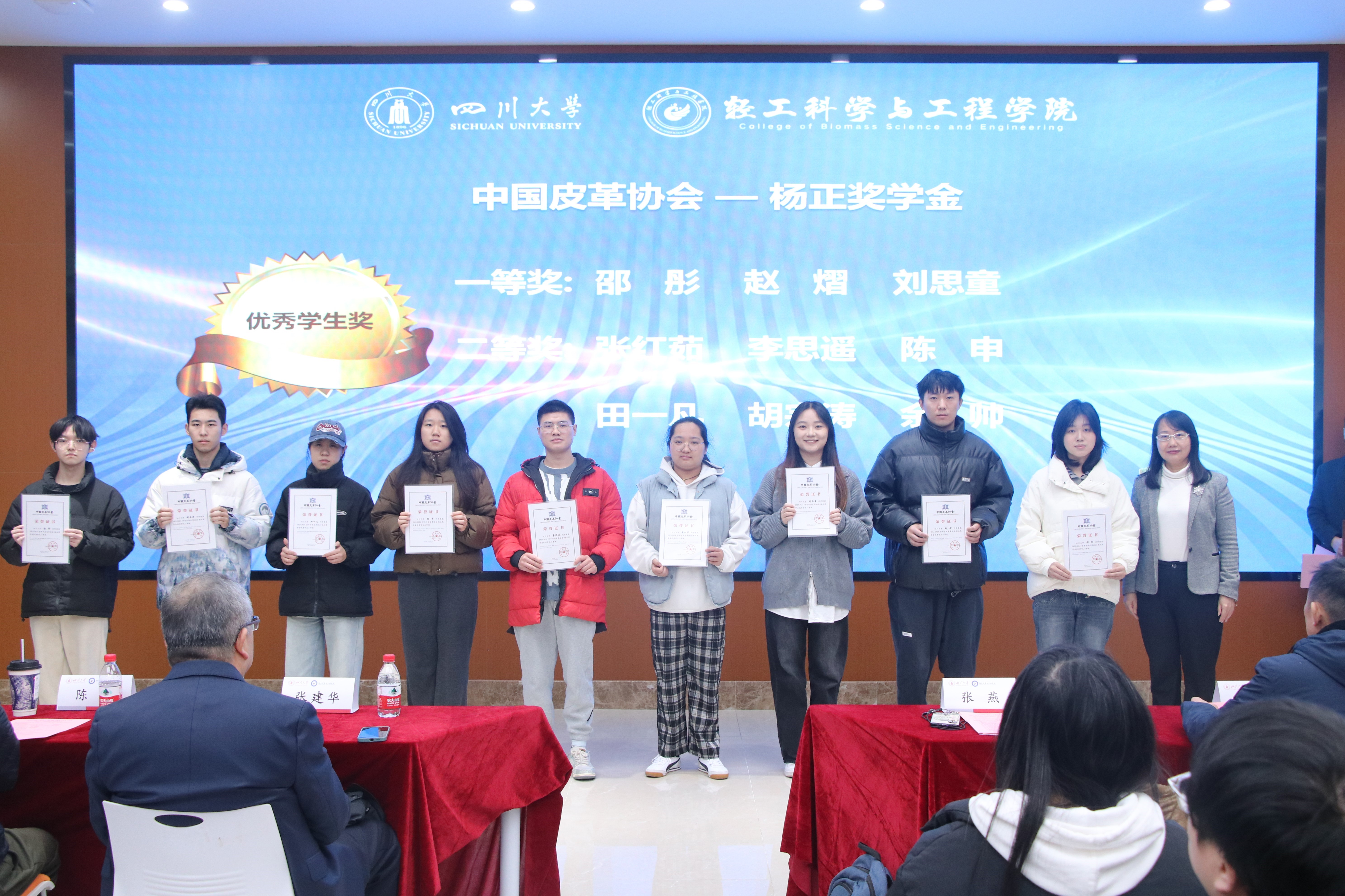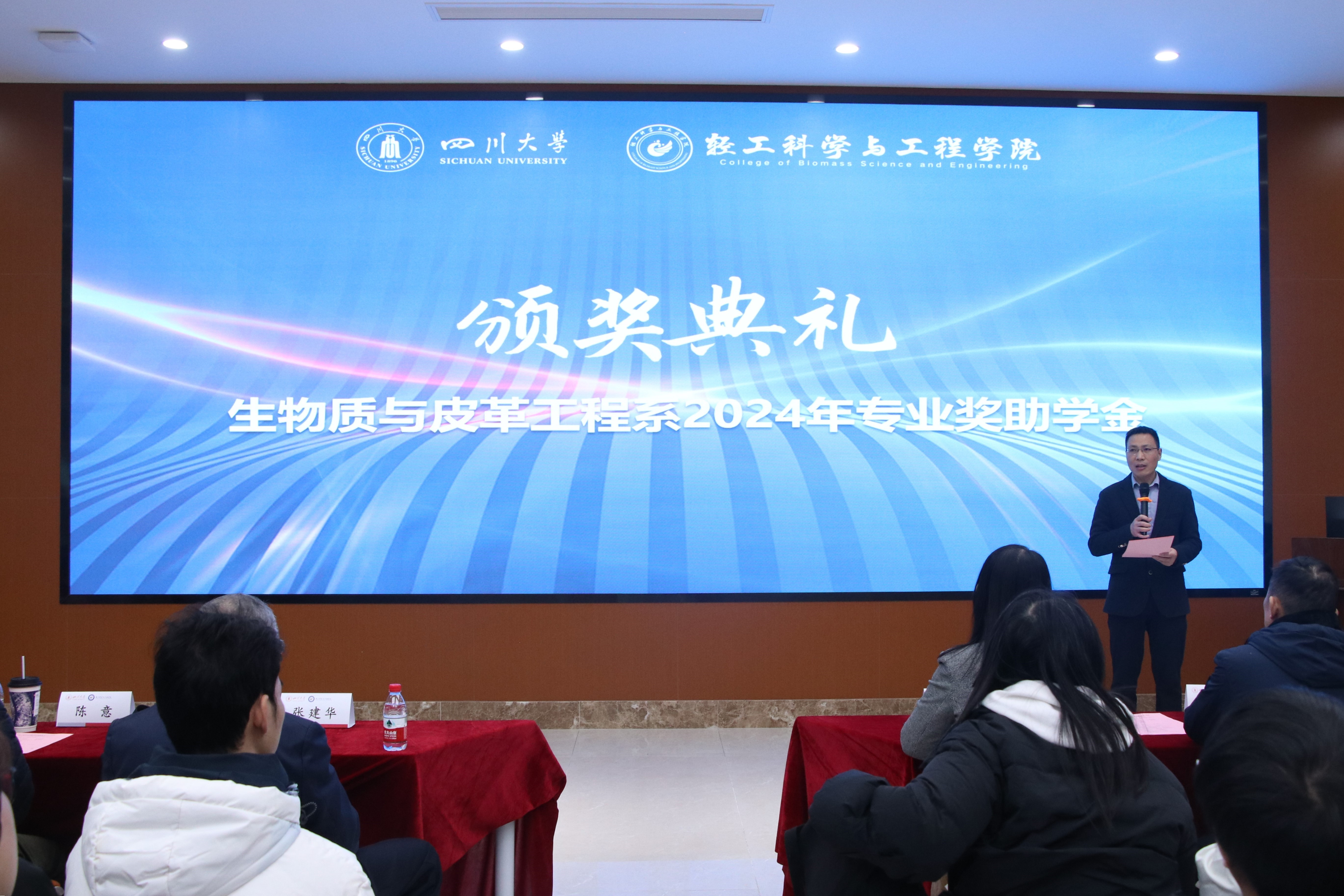 接着,生物质与皮革工程系副系主任程海明教授宣读《四川老员工物质与皮革工程系2024年度优秀个人及集体表彰决定》。在欢快并隆重的颁奖音乐中,设奖单位的嘉宾与公司的领导们为获奖同学逐一颁奖,并合影留念,共同记录下这一荣耀时刻。