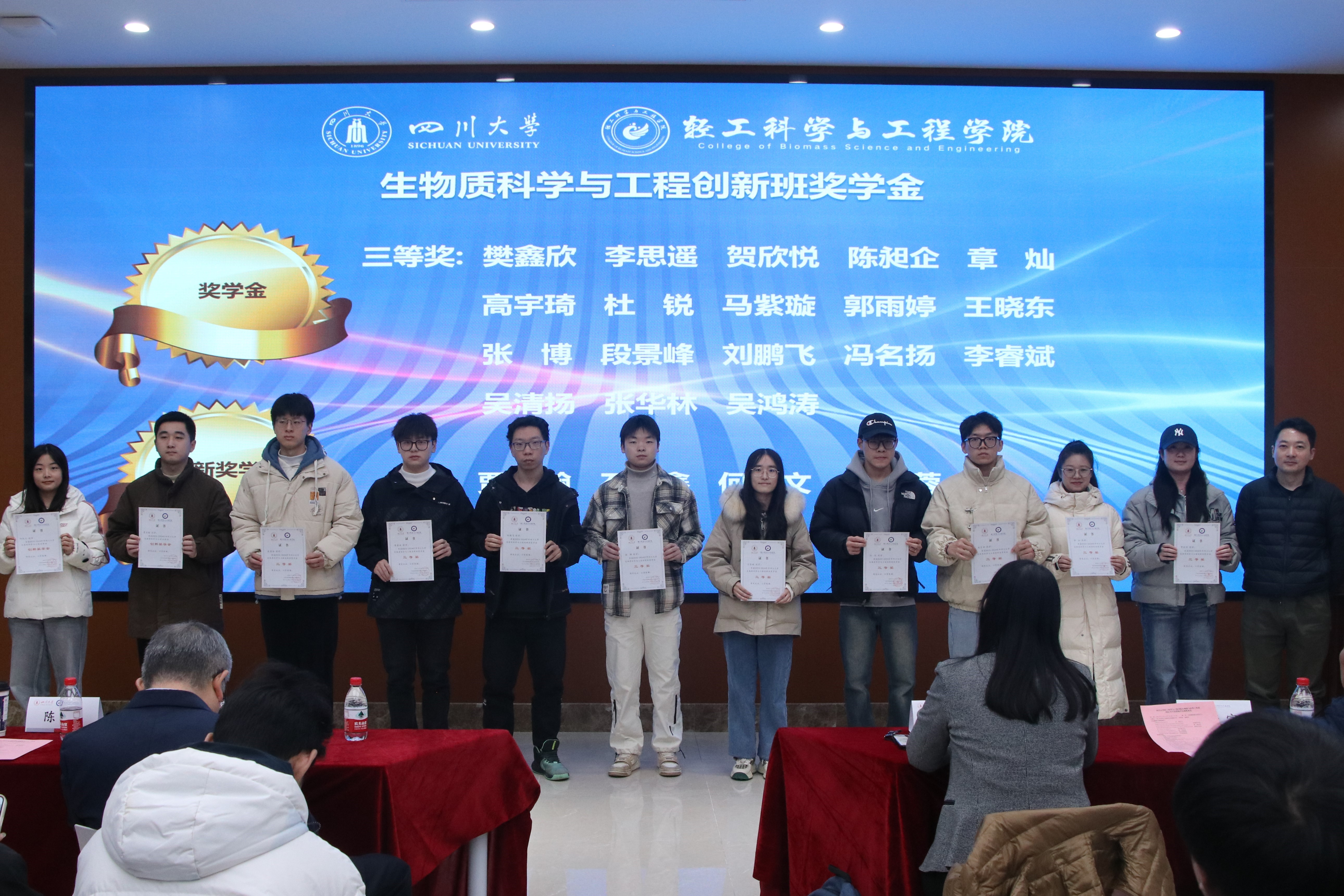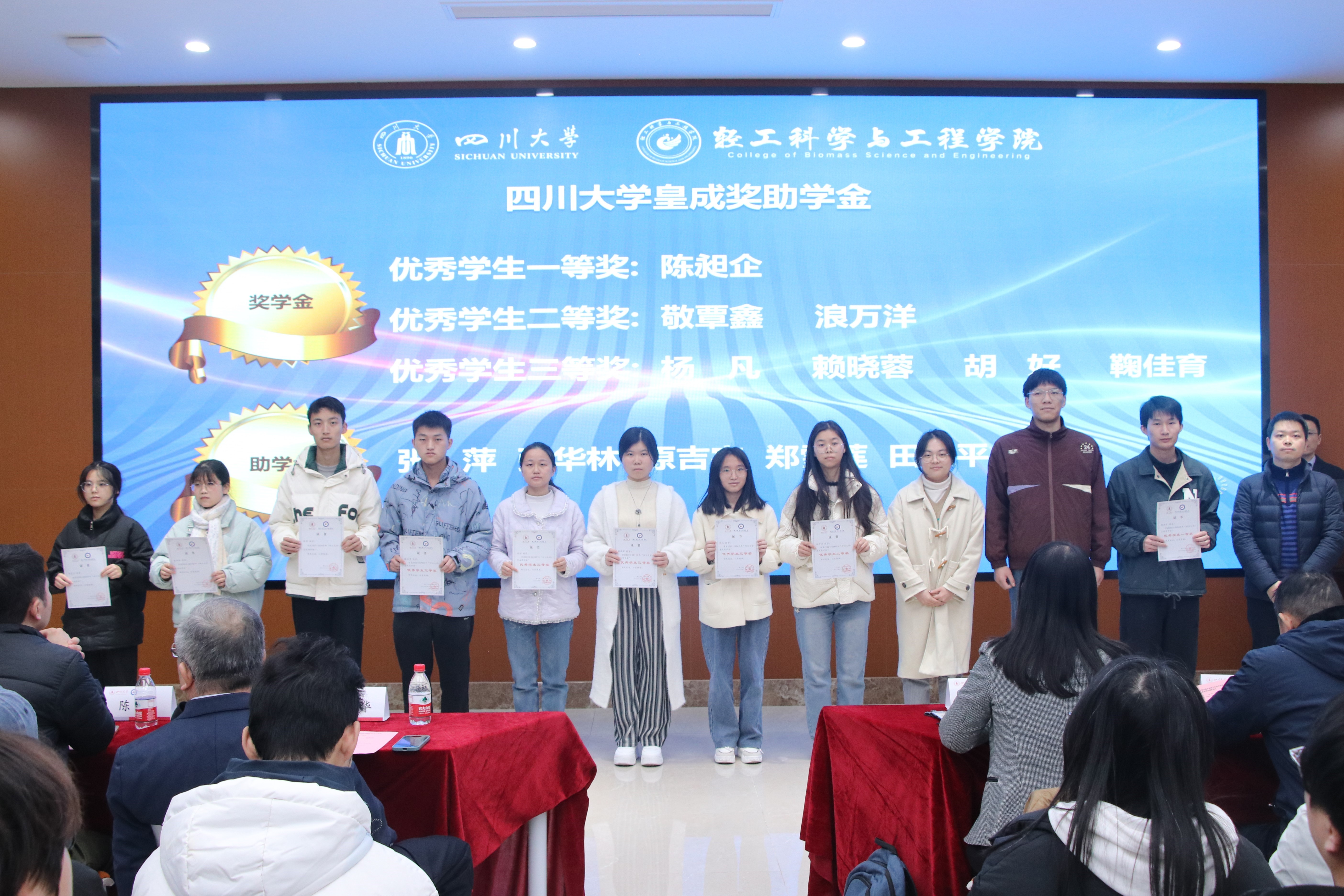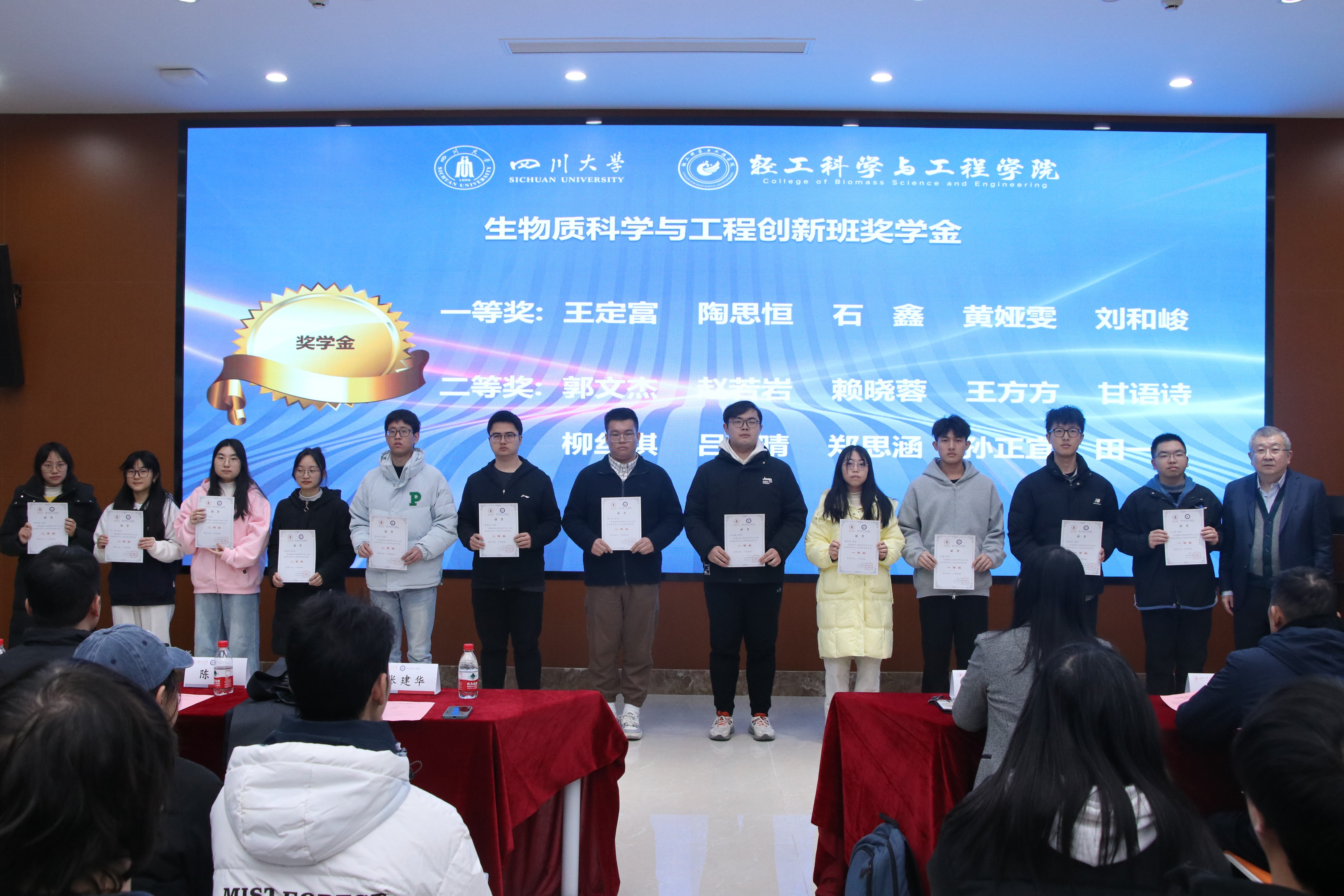 接着,生物质与皮革工程系副系主任程海明教授宣读《四川老员工物质与皮革工程系2024年度优秀个人及集体表彰决定》。在欢快并隆重的颁奖音乐中,设奖单位的嘉宾与公司的领导们为获奖同学逐一颁奖,并合影留念,共同记录下这一荣耀时刻。