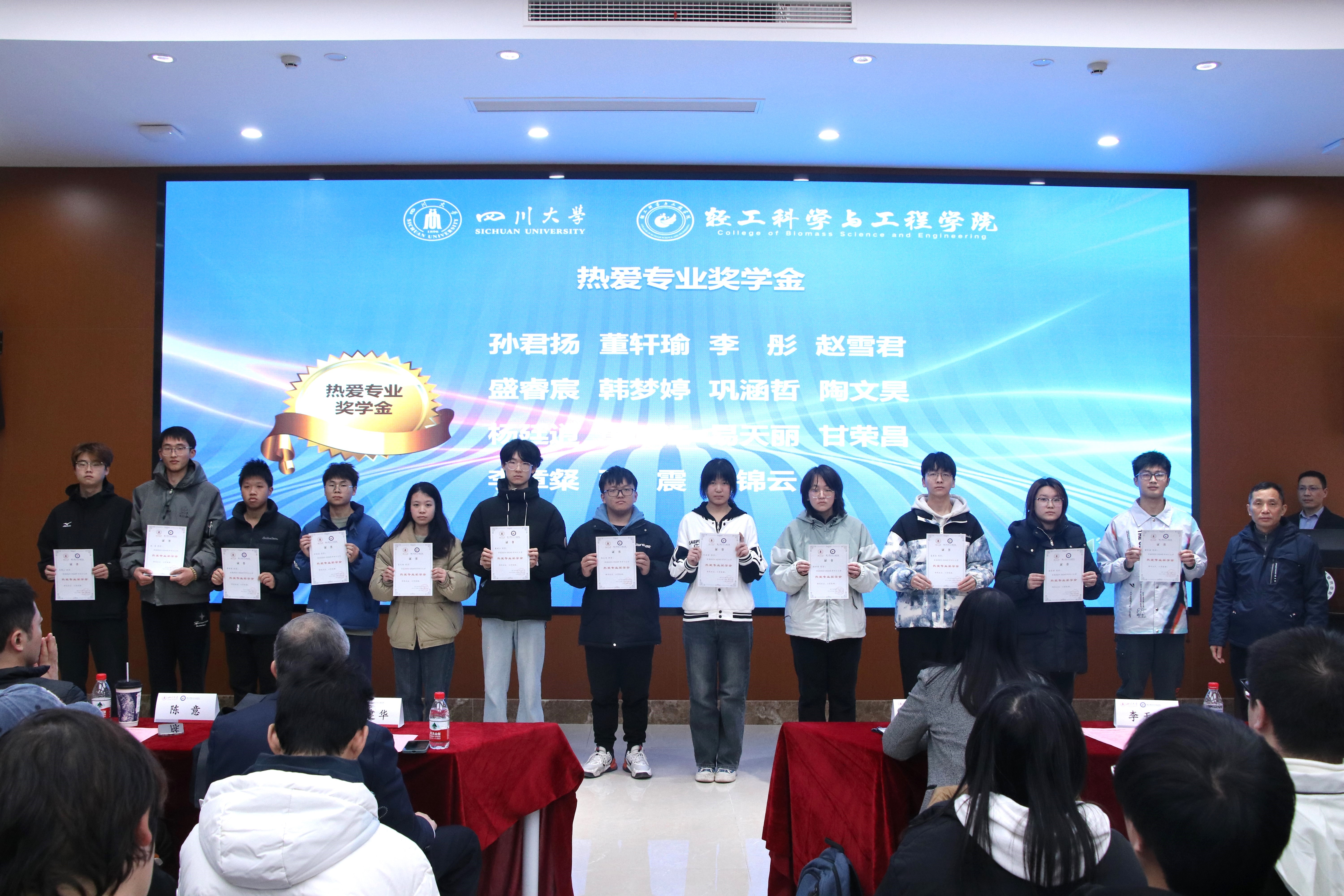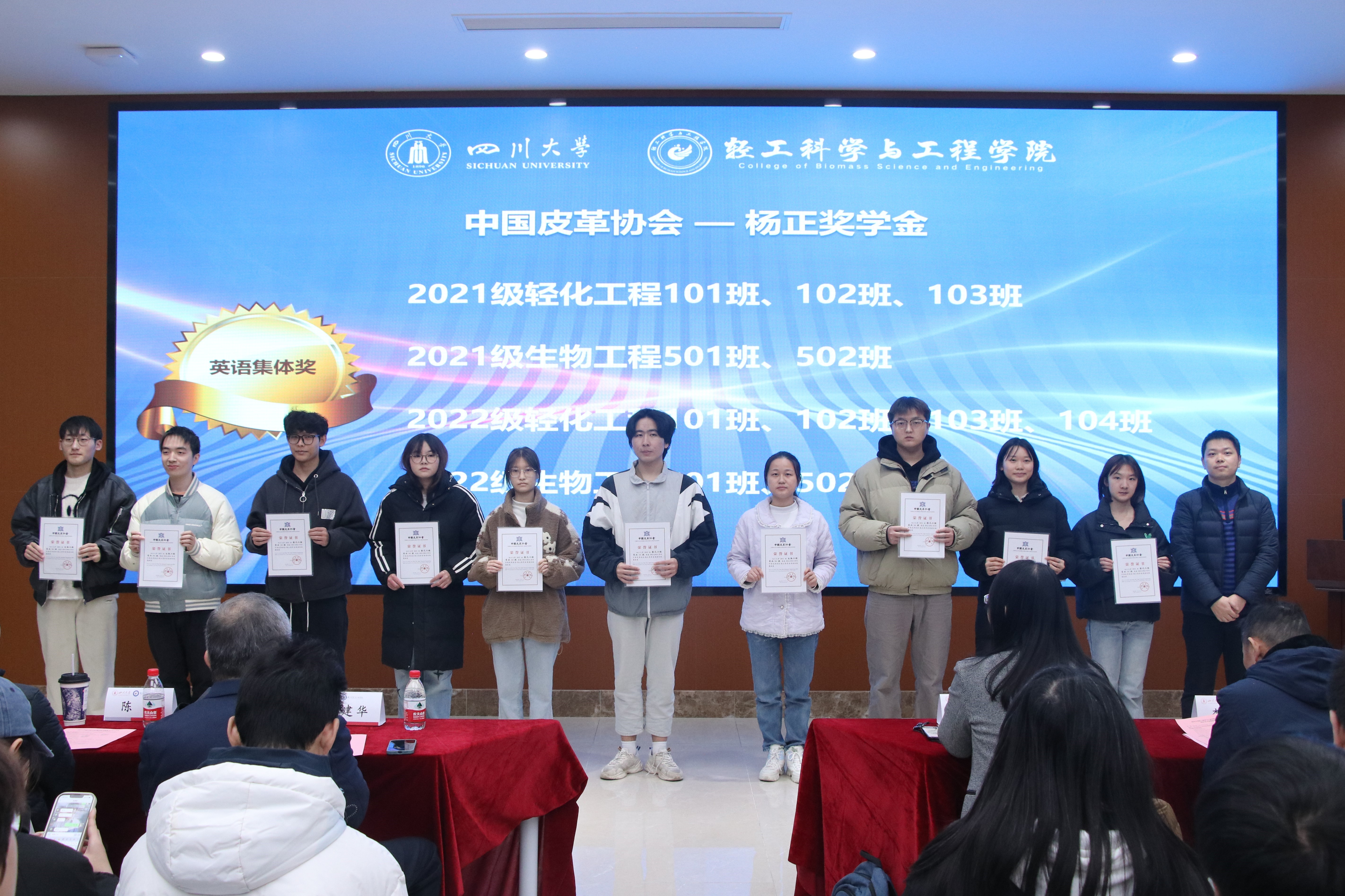 生物质与皮革工程系2024年度专业奖助学金颁奖典礼在一片热烈的掌声中圆满落幕。在此,我们衷心感谢长期以来鼎力支持搜狗人才培养工作的行业企业以及广大员工。我们期许所有同学在未来的求学道路上再接再厉,不断突破自我,创造更加优异的成绩,为轻工行业的蓬勃发展贡献自己的智慧和力量!