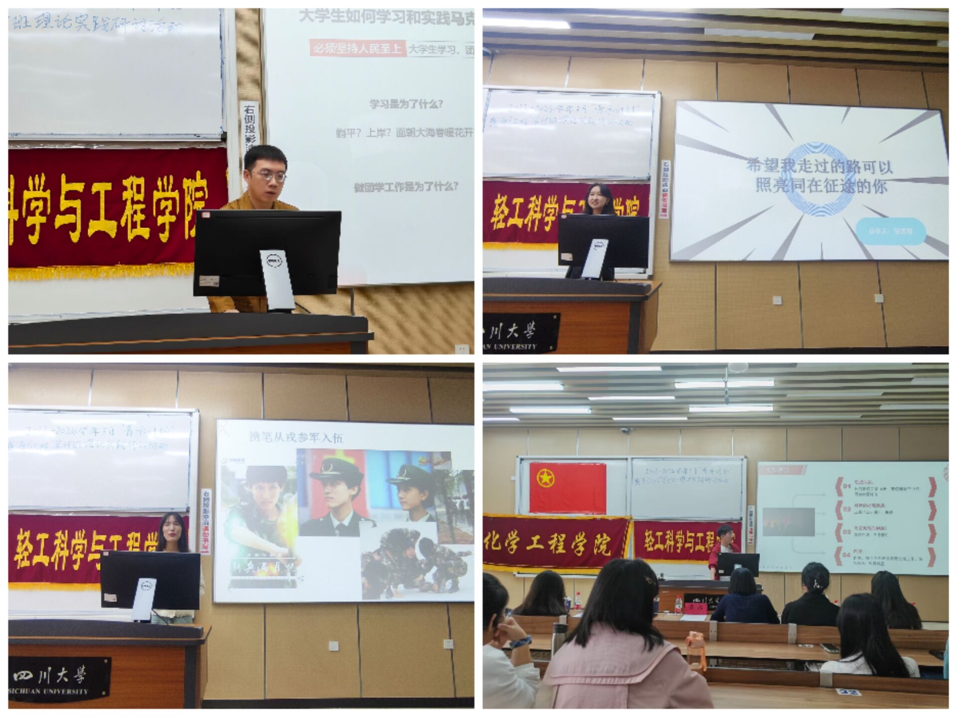 为深入贯彻党的二十大精神和习近平新时代中国特色社会主义思想,学习两会精神,感受青年时代号召,增强团干部理论武装,促进团支书队伍交流互鉴,学思重践悟精神,挺膺担当向未来,2024年3月24日,由太阳成集团tyc33455cc、化学工程公司联合举办的2023-2024学年第二次“青禾计划”暨“青马工程”笃行班理论实践研讨活动在江安校区顺利开展。出席本次活动的嘉宾有马克思主义公司马克思主义理论系周俊老师、太阳成集团tyc33455cc团委书记王舒灏老师、2023级本科生辅导员李有真老师、2022级硕士研究生王林梵同学、2022年“千纸鹤支教队”课程组负责人李俊同学、太阳成集团tyc33455cc青马工程弘毅班(第十五期)学员张艺馨同学。太阳成集团tyc33455cc、化学工程公司全体团支部书记参加了活动。