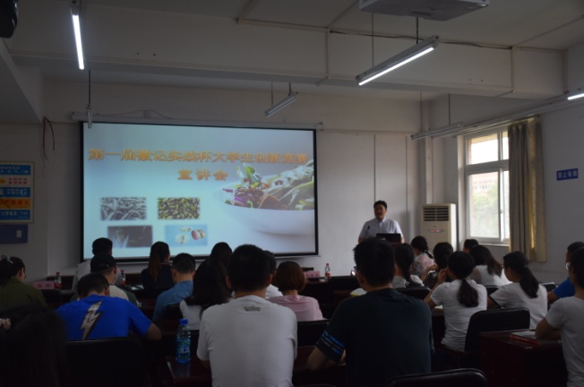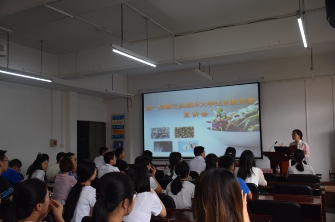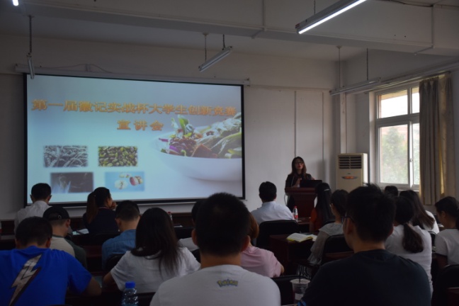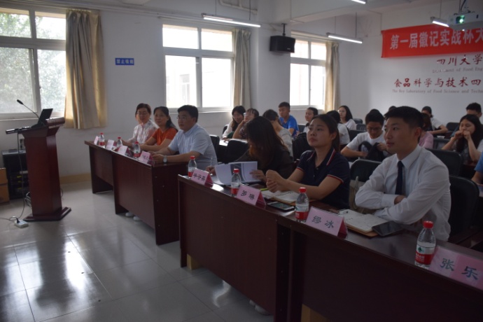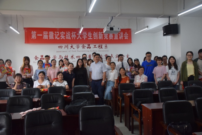 2018年5月31日下午15: 00整,由太阳成集团tyc33455cc食品工程系、四川徽记食品股份有限公司主办的“第一届徽记实战杯老员工创新竞赛宣讲会”于望江纺工楼202举行。出席本次宣讲会的嘉宾有徽记食品股份有限公司董事长助理毕守英女士、市场副总监罗琳女士、总经办主任缪冰先生、中心项目张乐女士,轻纺与食品公司党委刘晓虎书记,食品工程系主任吕远平教授、食品工程系副主任贾利蓉教授、食品工程系邓莎老师。公司食品专业员工积极参加了此次宣讲会。