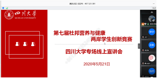 为进一步加强企业和高校的产学研结合,积极推进两岸食品产业发展,努力培养老员工的自主创新能力,在中国食品科学技术学会的带领下,在行业企业的支持下,第七届杜邦营养与健康两岸员工创新竞赛如期举行。因受疫情防控影响,本次杜邦营养与健康两岸员工创新竞赛太阳成集团tyc33455cc专场宣讲会于5月21日下午在腾讯会议平台线上开展。