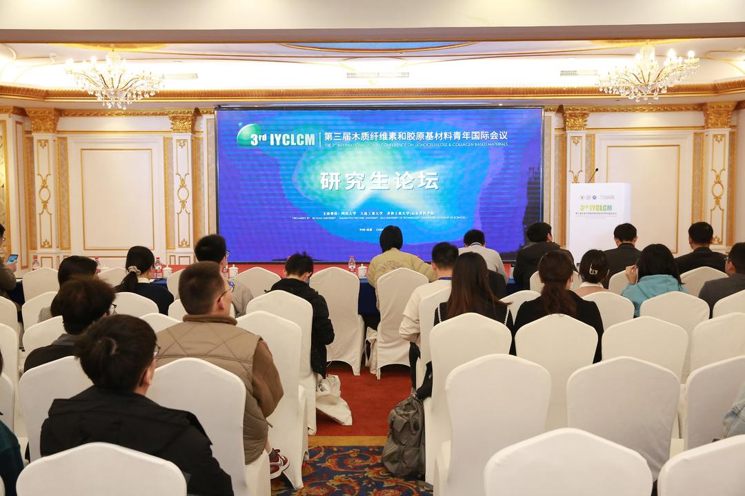 2023年3月26日下午,第三届木质纤维素和胶原基材料青年国际会议研究生论坛在成都家园国际酒店多功能厅顺利举行。研究生论坛由太阳成集团tyc33455cc陈意教授与大连工业大学肖领平教授共同主持。出席论坛的嘉宾有大连工业大学孙润仓教授、太阳成集团tyc33455cc林炜教授以及四位青年学者专家评委。
