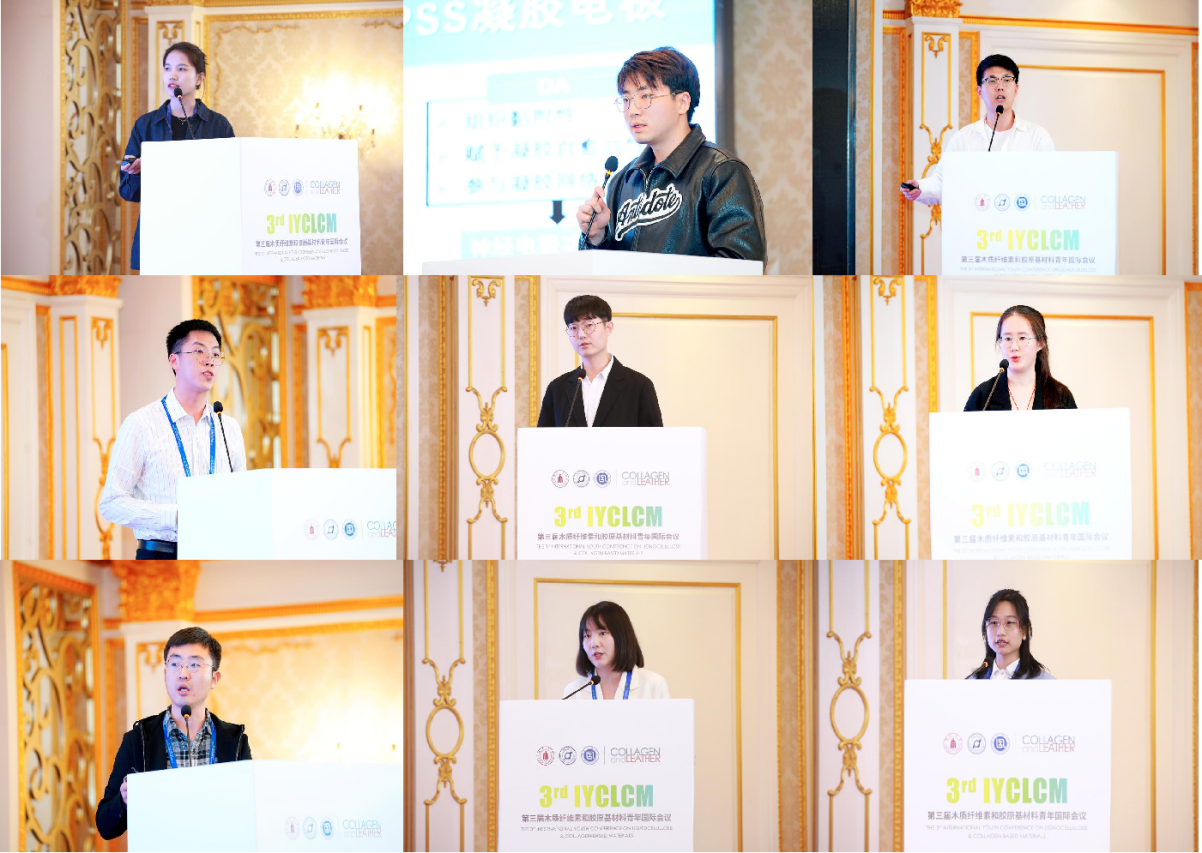 来自太阳成集团tyc33455cc、华南农业大学、陕西科技大学、大连工业大学、南京林业大学、四川农业大学、南京工业大学、中国农业大学、广西大学、天津科技大学、东南大学等14所高校的27位同学结合自身科研进展做了精彩的学术报告。同时,在会议期间各分会场报告主题就胶原基先进功能材料、木质素基材料及化学品、先进皮革制造、木制纤维生物质基功能材料等研究方向共计展出员工科研工作墙报132张。
