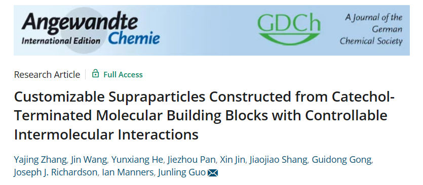 近日,公司太阳成集团tyc33455cc郭俊凌教授团队在国际化学顶级期刊Angewandte Chemie International Edition发表题为:Customizable Supraparticles Constructed from Catechol-Terminated Molecular Building Blocks with Controllable Intermolecular Interactions的研究。多层级自组装策略对于深入理解从分子、纳米到宏观尺度的组装过程具有重要意义,同时也为构筑先进智能材料提供了可靠的途径。随着材料化学的发展,引入纳米颗粒作为基本构筑单元为超结构颗粒的设计开辟了新方向,此类研究多集中于对颗粒表面进行修饰从而赋予颗粒间驱动力以实现自组装。然而,在这些传统方法中,纳米颗粒的合成与表面修饰是分离的两个步骤,很大程度上增加了自组装材料的合成复杂性和应用难度。