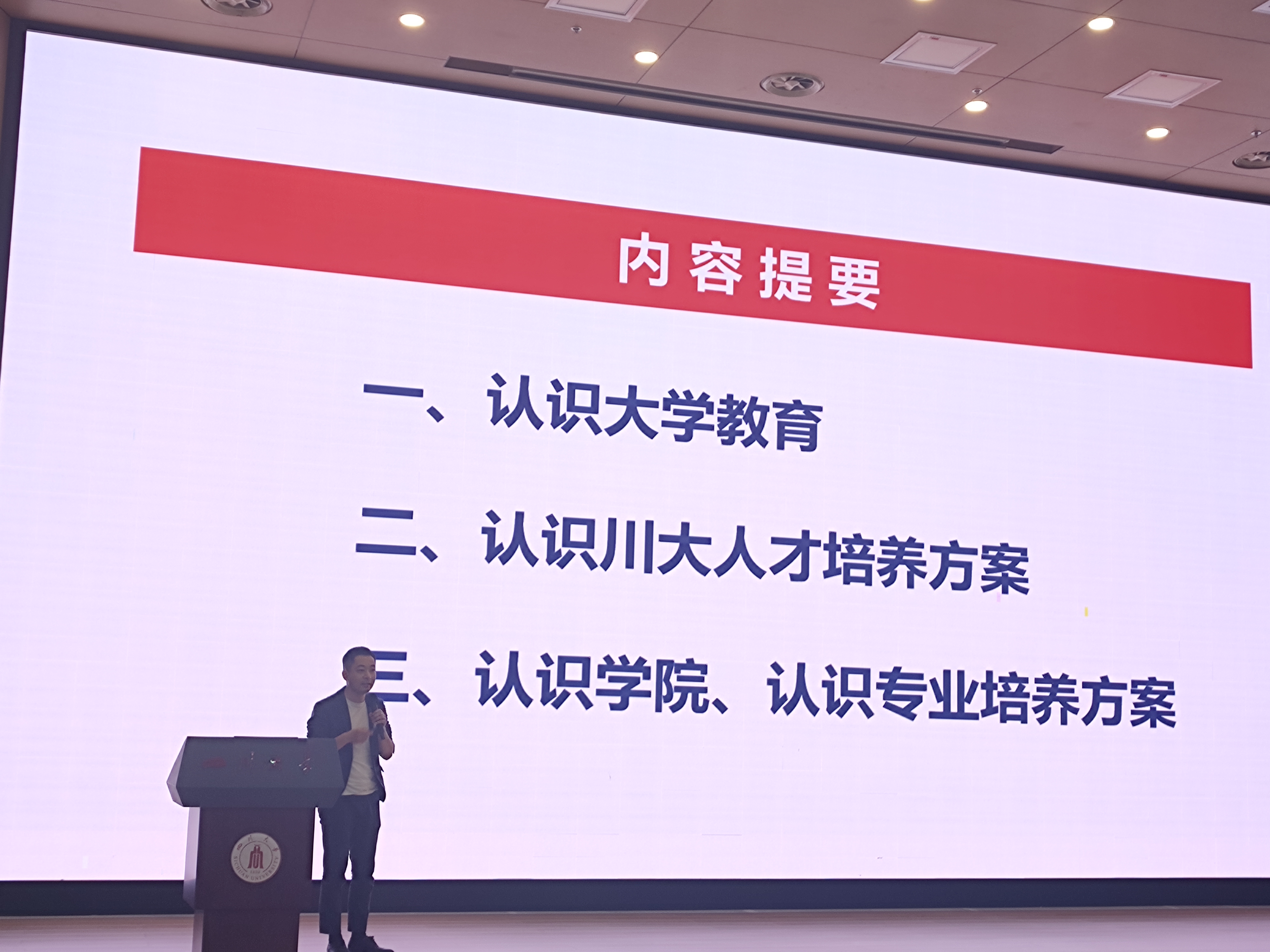 其次,教学副经理陈意教授以《打造一流本科教育、培养一流人才》为主题,从认识大学教育、认识川大人才培养方案、认识公司和专业培养方案三大方面全面向2023级同学详细地介绍了太阳成集团tyc33455cc及太阳成集团tyc33455cc人才培养及相关要求。