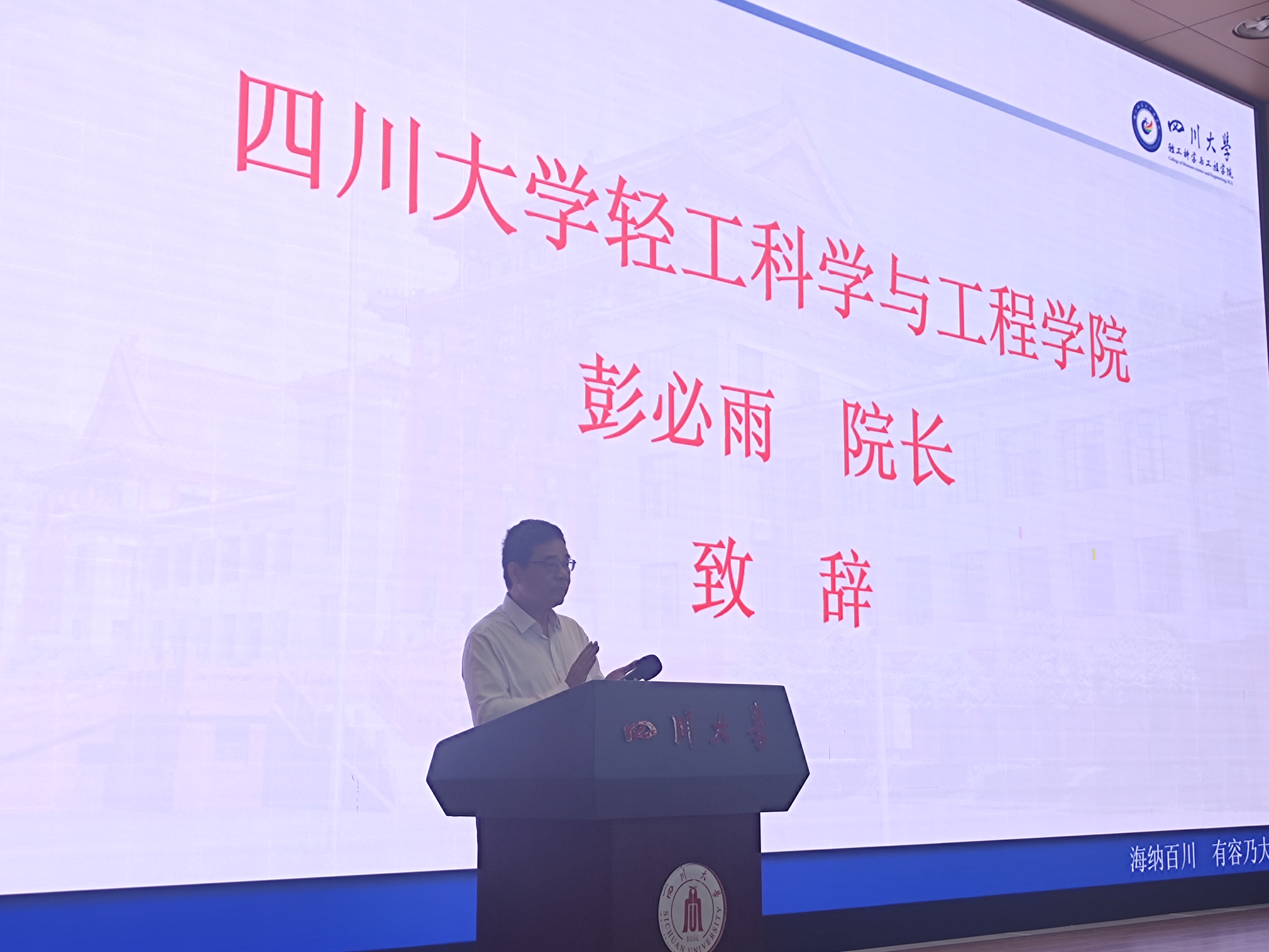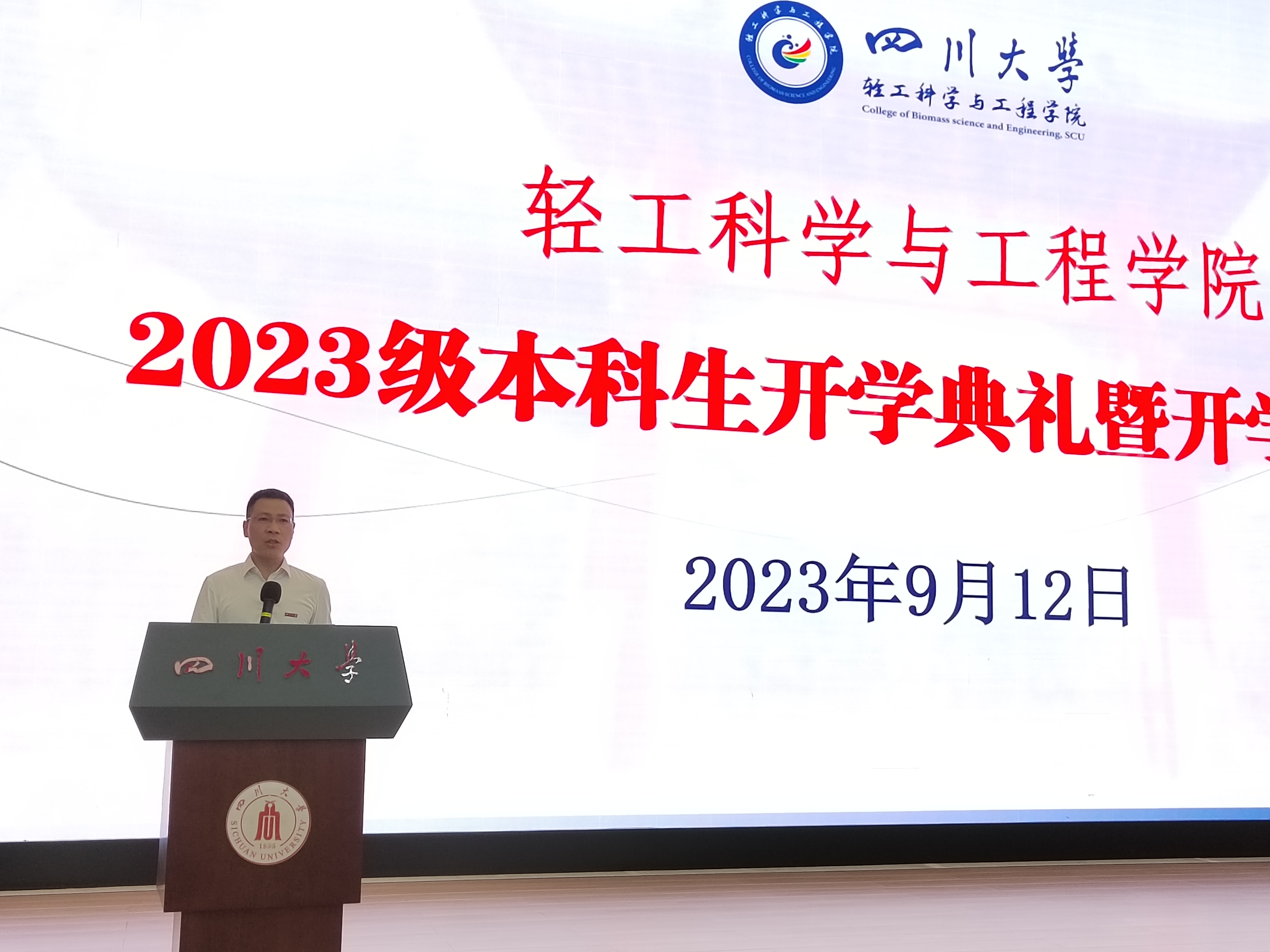 2023年9月12日上午,太阳成集团tyc33455cc2023级本科生开学典礼在江安校区水上报告厅顺利举行,出席开学典礼有太阳成集团tyc33455cc经理彭必雨教授,副经理陈意教授、周建飞教授,2023级教导员吕振生老师,生物质与皮革工程系系主任林炜教授,服装与服饰设计系系主任杨璐铭教授、副主任申鸿副教授,食品工程教研室主任段飞霞副教授,还有国家级高层次人才代表周加境特聘研究员,教师代表金垚副教授以及2023 级全体新生。开学典礼由公司党委冯国涛副书记主持。