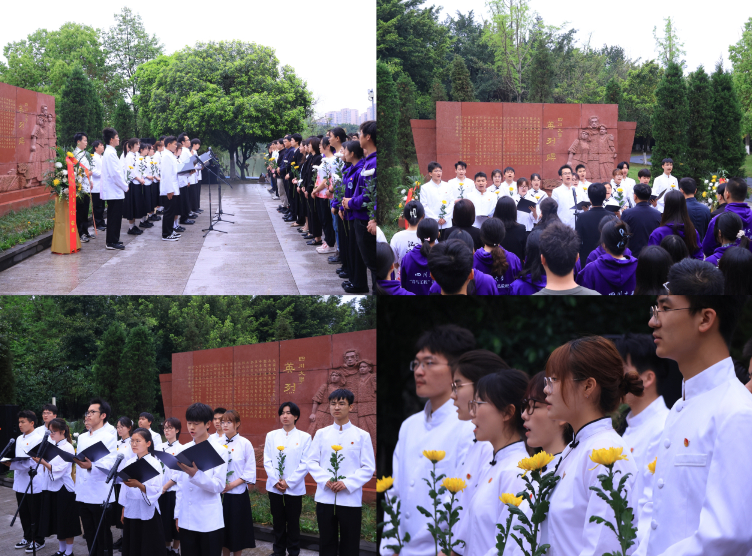 活动伊始,师生代表们全体肃立,手捧黄白菊,并向川大英烈以及为中国人民解放事业和国家建设事业英勇献身的烈士默哀。