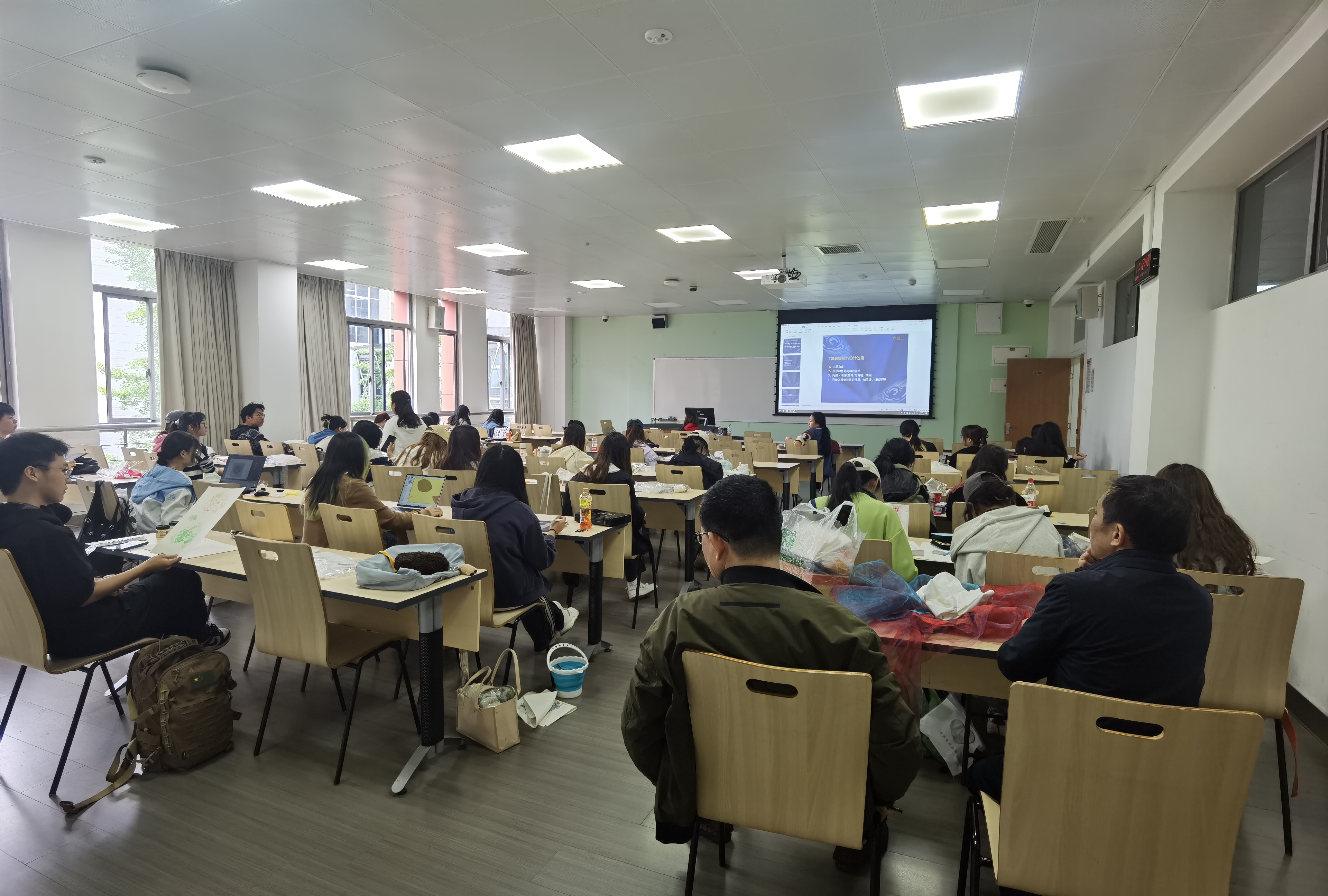 李天富书记、彭必雨经理走进《图案设计》课堂听课