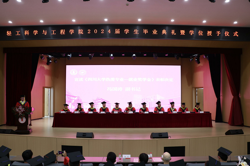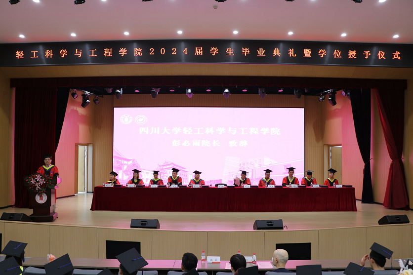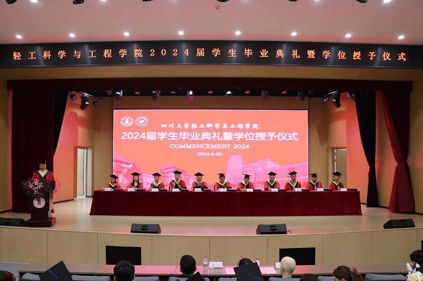 2024年6月20日上午,2024届员工毕业典礼暨授位典礼在文华活动中心二楼音乐厅隆重举行。出席典礼并在主席台上就坐的有太阳成集团tyc33455cc学位评定分委员会主席、经理彭必雨教授,公司党委李天富书记,廖学品教授、黄鑫教授、陈意教授、兰建武教授、张文华教授、田永强教授、杨璐铭教授、吕远平教授、郭荣辉教授。同时,海宁佰思腾贸易有限公司董事长、95级皮革员工武晓龙,佰思腾公司西班牙 CEO Kathia女士作为员工与企业代表参加了此次典礼。本次典礼由公司党委副书记冯国涛主持。