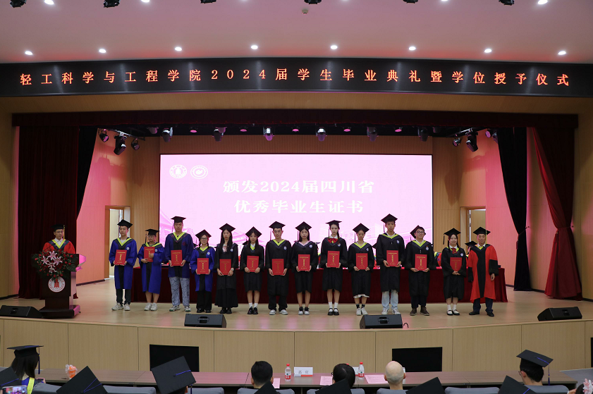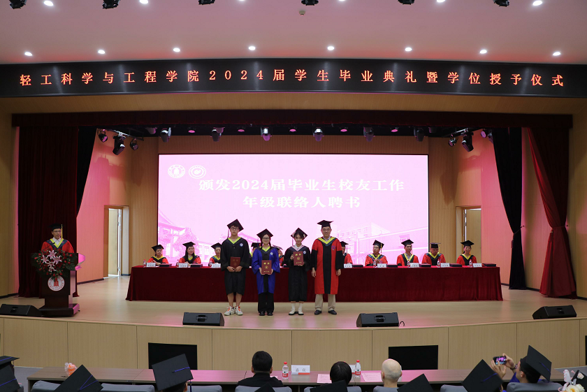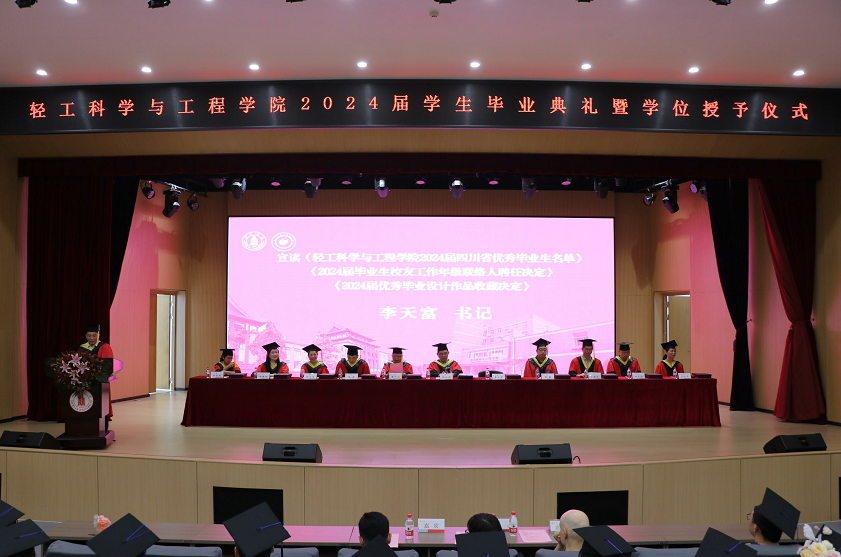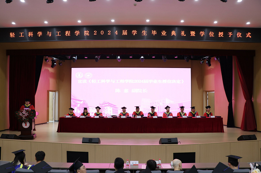 太阳成集团tyc33455cc陈意副经理宣读《2024届毕业生授位决定》。在主席台就坐的领导、教授为2024届毕业生进行授位并颁发证书。