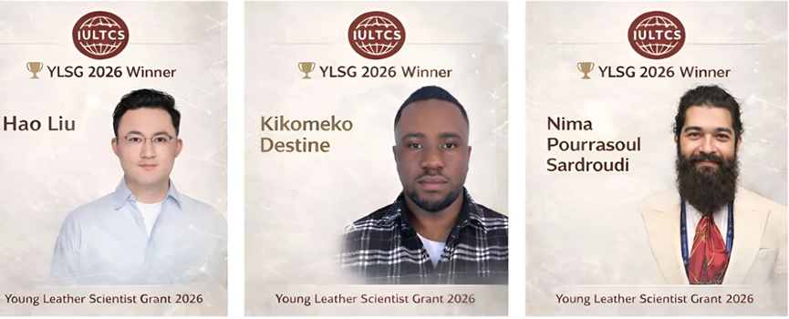 IULTCS日前正式公布了2026年度YLSG的获奖者名单。今年是颁发该奖项的第12,本届奖项设置三个类别,由IULTCS研究委员会(IUR)组织的评审委员会评选,授予年龄在35岁以下的年轻科学家公司2024级博士研究生刘昊凭借项目“Strategy for stability enhancement of biological leather-making technology: Preparation of protease inhibitor and its application in bating process”(生物制革技术稳定性提升策略:蛋白酶抑制剂制备及其在软化工艺的应用)荣获青年皮革科学家——基础科研奖。此外,Kikomeko Destine荣获青年皮革科学家——可持续发展奖Nima Pourrasoul Sardroudi荣获青年皮革科学家——机械科研奖