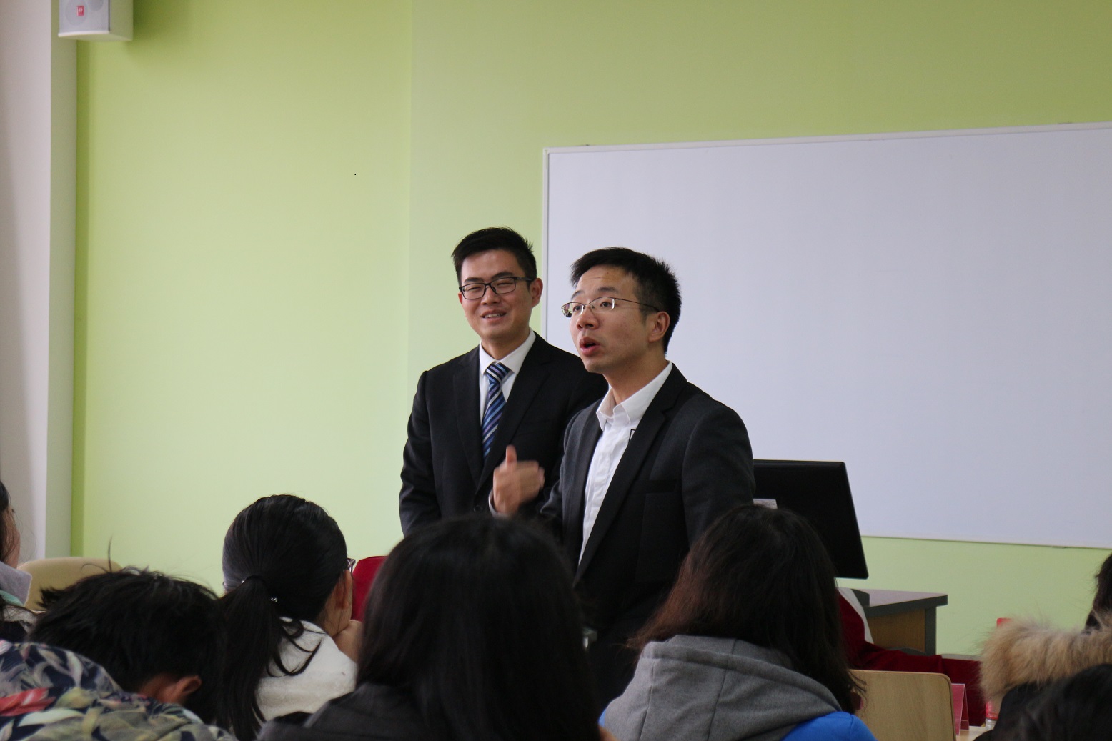 提问环节中,程林先生与曾维才博士积极为员工们解疑答惑,内容涉及大赛以及行业前景等相关问题。中午12时,宣讲会圆满结束,与会人员合影留念。