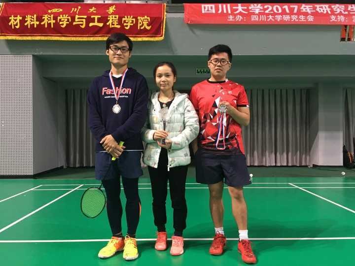 2017年11月25日—12月3日,2017研究生阳光体育羽毛球联赛在望江校区风雨羽毛球场顺利举行。公司研究生羽毛球队以团体总成绩第一喜获佳绩,获得本次团体冠军,其中公司混双组合叶勤文和文嘉婷同学夺得第二名优异成绩,男单贾欣驹同学夺得第二名优异成绩,邓莎老师进入教师组前八名。