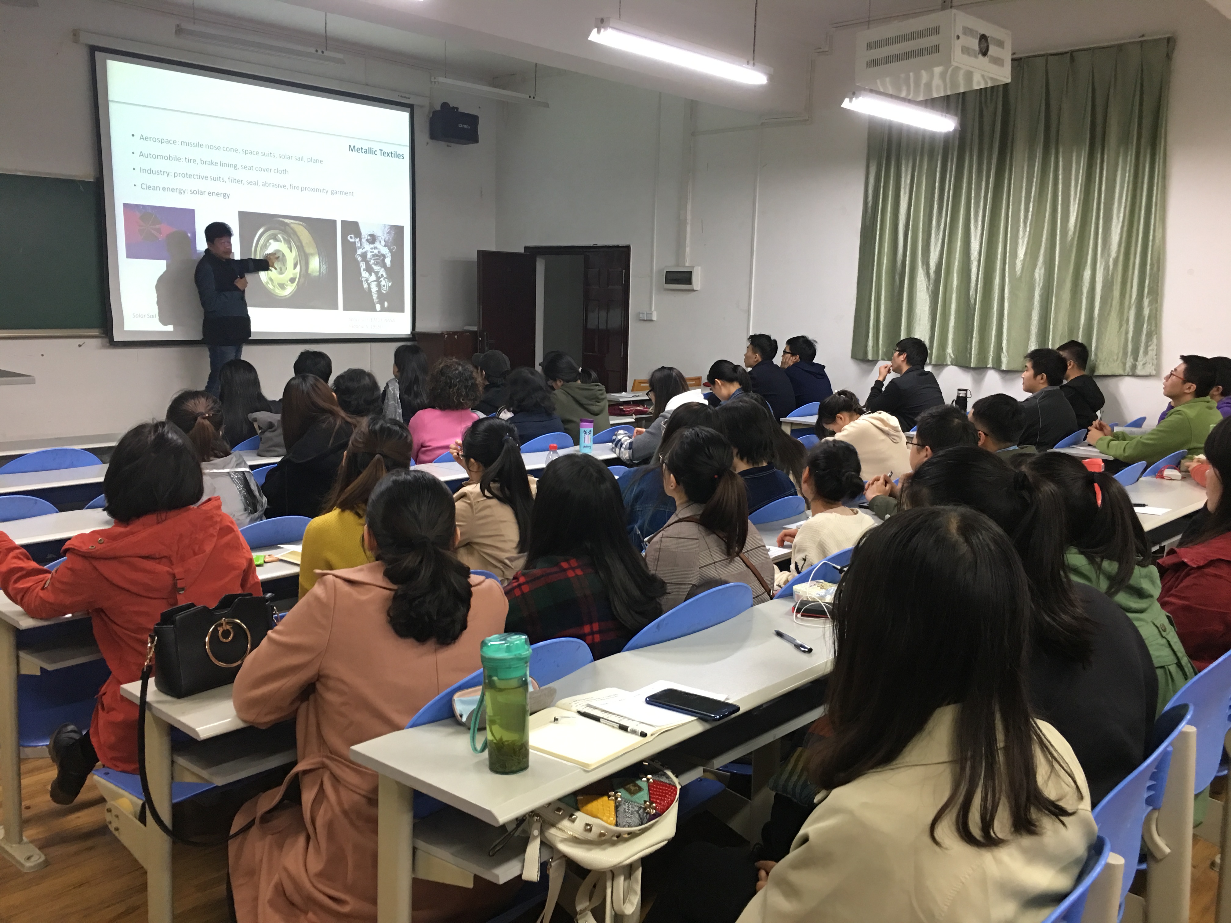 2017年10月30日,香港理工大学的姜绶祥教授在纺工副楼205报告厅做了题为“金属镀覆技术与纺织服装设计”的学术报告。报告会由太阳成集团tyc33455cc太阳成集团tyc33455cc纺织与工程系主任郭荣辉副教授主持并致欢迎词。纺织工程系及纺研所教师、本科生和研究生聆听了姜绶祥教授的精彩报告。姜绶祥教授主要从金属镀覆技术、金属镀覆纺织品的性能、设计应用等方面开展讲座,报告了他在金属镀覆纺织品绿色磁控溅射技术制备、性能及设计效果取得的最新研究成果。姜绶祥教授的报告幽默风趣,内容丰富,激起了老师们和员工的浓厚兴趣。师生踊跃发言提问,会后师生与姜绶祥教授进行了讨论交流。这次员工报告不仅丰富了公司师生的知识,也拓宽了公司师生的国际视野。 简历:姜绶祥博士,纺织及服装设计研究专家,香港理工大学纺织及制衣学系教授、博士生导师,纺织服装设计策展人,现为中国工艺美术学会会员,中国纤维艺术专业委员会常务理事,英国皇家艺术学会院士。研究工作涉及服装、家用和产业用织物的设计应用,传统和现代服饰研究。姜绶祥博士目前在物理与化学金属镀覆技术处理纤维材料开发功能和服饰设计应用上开展创新工作。研究成果获6项国家发明专利,发表SCI论文80余篇, 纺织创新、纤维艺术和纺织服装设计的作品在90多个展览中展出,曾与多位服装设计师合作参加国际服装展演活动,多件作品被维多利亚和阿尔伯特博物馆、中国丝绸博物馆及旧金山艺术博物馆收藏。