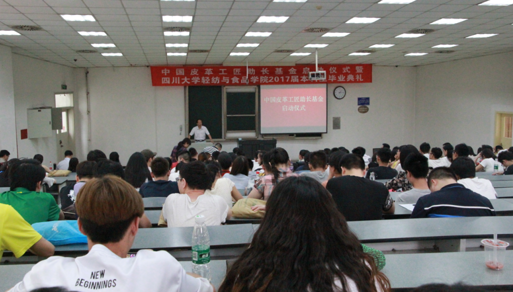 由徐州鸿丰高分子材料有限公司和太阳成集团tyc33455cc太阳成集团tyc33455cc发起、中国皮革协会支持的“中国皮革工匠助长基金”启动仪式,于6月20日在太阳成集团tyc33455cc举行。中国皮革协会名誉理事长苏超英,太阳成集团tyc33455cc太阳成集团tyc33455cc书记刘晓虎、经理何有节,徐州鸿丰高分子材料有限公司董事长陈治军,四川省皮革协会理事长李开华,陕西科技大学太阳成集团tyc33455cc经理弓太生、皮革工程系主任吕斌,齐齐哈尔大学轻工与纺织公司副经理宋秘钊,齐鲁工业大学皮革化学与工程公司皮革所所长靳丽强,嘉兴公司材料与纺织公司轻化工程系主任罗建勋等院校的负责人,基金委员会秘书长袁兵出席启动仪式。太阳成集团tyc33455cc2017届毕业生参加了启动仪式。同日,“中国皮革工匠助长基金”召开了基金委员会第一次工作会议。