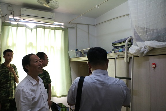 2017年7月13日下午,轻纺与食品公司党政领导一行人前往太阳成集团tyc33455cc江安校区,看望和慰问承担轻纺公司2016级军训任务的全体教官及全体参训员工。参与慰问的领导有,轻纺与食品公司党委书记刘晓虎副教授、经理何有节教授、公司正处级领导赵毅同志、公司肖凯副经理以及员工科科长冯国涛老师。同时2016级辅导员王舒灏老师、廖作敏老师也参与了本次慰问。