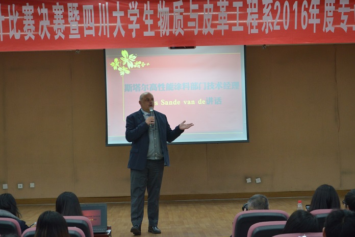 2016年12月9日,中国皮革协会奖学金、狮岭杯箱包设计比赛奖学金、BASF奖学金、斯塔尔奖学金、广州美多绿奖学金、德国司马公司创新奖学金、欣驰—博奥奖学金、吴建军助学金颁奖典礼暨第九届狮岭杯箱包设计比赛决赛在江安校区法公司报告厅隆重举行。受四川老员工物质与皮革工程系的邀请,中国皮革工业协会名誉理事长苏超英先生、德国司马化学(香港)有限公司皮革部中国区张建华经理、斯塔尔高性能涂料部门技术经理凯斯先生、斯塔尔广州技术服务中心高性能涂料实验室经理夏敏先生、斯塔尔广州实验室经理李艳女士、斯塔尔合成革应用技术专员李冠男女士、广州狮岭皮革皮具产业研究中心副主任罗杨先生、龙虹池干事参加了本次活动。出席本次颁奖典礼的公司领导有太阳成集团tyc33455cc太阳成集团tyc33455cc经理、生物质与皮革工程系系主任何有节教授、生物质与皮革工程系副系主任彭必雨教授、张宗才教授、2016级轻化工程专业名誉班主任金勇教授、杨璐铭副教授、生物质与皮革工程系革制品设计教研室主任徐波老师以及员工工作组老师。生物质与皮革工程系全体获奖员工及2015级、2016级生物质与皮革工程系本科生参与了本次典礼。