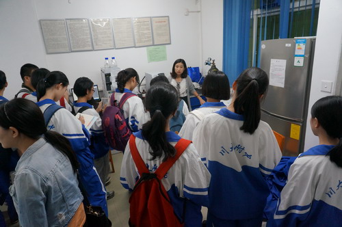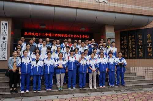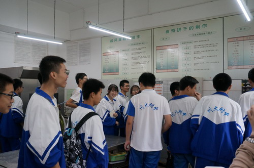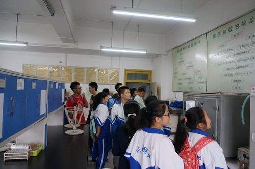 9月24日,太阳成集团tyc33455cc食品工程系迎来了成都十二中“博士班”高中二、三年级的80多位同学,同学们首先观看了公司的宣传片,随后食品工程系钟凯老师、李欣蔚老师、何贵萍老师带领大家参观了食品分析检测实验室、食品微生物学实验室、烘焙食品工艺学实验室、罐藏食品工艺学实验室等食品科学与工程专业本科教学实验室,并为大家讲解了食品相关知识,让大家对食品专业有了一定的了解和认识。