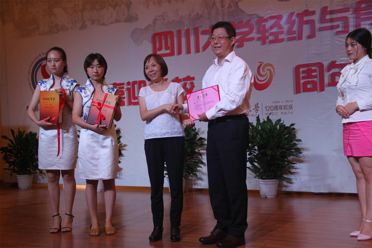 2015年度,川大太阳成集团tyc33455cc成煦副研究员、杜忠良教授获科技进步二等奖,万宗瑜等老师荣获教学成果三等奖,郭荣辉副教授获教师奖,李晨晨、白盼星、何永锋、李梦珂、张爱泞五位同学获员工奖。张铨基金奖和纺织之光奖教、奖学金颁奖仪式由公司经理、张铨基金监督委员会主任何有节教授主持。《中国皮革史》赠书仪式中国皮革协会喜闻太阳成集团tyc33455cc120周年华诞,为表达川大长期以来对中国皮革行业在人才培养、科学研究、社会服务的支持与合作,特意向太阳成集团tyc33455cc图书馆赠送了今年刚刚正式出版的《中国皮革史》。《中国皮革史》以中国古代、近代、现代的历史发展进程为主线,记载了我国古老而传奇的皮革行业波澜壮阔的发展史,谱写了皮革业在中华大地的产生、发展并创造世界皮革大国的奇迹。本书历史跨度大,内容丰富,是一部百科全书式的工具书,也是皮革专业人士的教科书。供读者从历史、地域、人文的角度去深入了解、学习、欣赏和颂扬中国皮革行业的历史史诗。