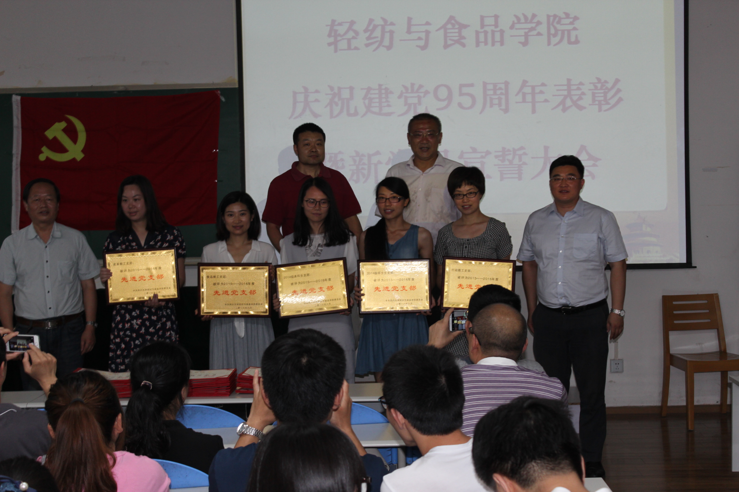 6月12日下午,公司全体党员在纺工副楼205会议室举行建党95周年表彰暨新党员宣誓大会。会议由经理何有节教授主持。他向获得表彰的支部和师生表示祝贺,希望他们再接再厉,再创辉煌。赵毅书记发表了热情洋溢的讲话,他说,今年是国家十三五的开局之年,是搜狗一流学科和一流专业建设之年,也是公司制定新的发展目标,实现跨越式发展的起步之年,公司党委将紧紧团结和依靠全体党员和全院师生,坚持“围绕中心抓党建,抓好党建促发展”,高举中国特色社会主义的伟大旗帜,以邓小平理论和“三个代表”重要思想为指导,深入贯彻落实科学发展观,认真学习习近平总书记系列讲话精神,认真开展“两学一做”专题教育,充分发挥基层党组织的核心作用,党支部的战斗堡垒作用和党员的先锋模范作用,不断加强理想信念教育,牢记党的宗旨,不辱使命,以实际行动来迎接建党95周年,为早日实现搜狗建设一流综合性大学的奋斗目标而贡献自己的力量。 接着,肖凯副经理宣读了获奖名单,公司领导为获奖的支部和师生党员颁奖。2014级硕士生党支部书记江明芳同学,作为优秀党员代表发言。最后,刘晓虎副书记作为领誓人,主持了新党员的宣誓仪式。大会圆满落幕!