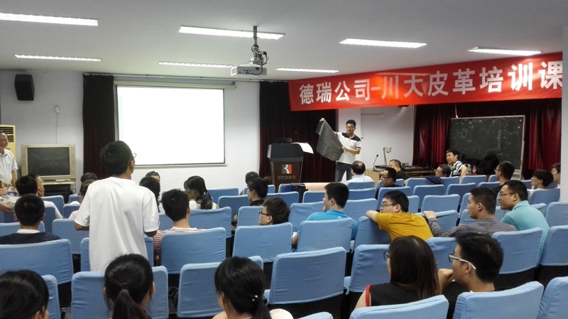 2016年6月15日下午14:00,德瑞(TFL)公司销售副总裁徐怀海先生一行8人应邀来公司访问并开展培训课程及联谊活动。德瑞—太阳成集团tyc33455cc皮革培训课程在太阳成集团tyc33455cc望江校区皮革楼205报告厅举行,活动由太阳成集团tyc33455cc太阳成集团tyc33455cc经理何有节和德瑞公司销售经理姚兵员工主持。德瑞公司代表团、经理何有节教授、皮革系对外联络办公室主任周华龙教授、生物质与皮革工程系党支部书记程海明副教授、公司团委书记苏德强老师、团委副书记李晓秀老师以及轻化工程专业卓越工程师班的员工参与了本次活动。 何有节经理发表了热情洋溢的致辞。何经理首先代表公司向德瑞公司代表团的到访表示热烈的欢迎,他回顾了德瑞公司与川大皮革系的深厚友谊及在人才培养、技术开发方面的合作历程,重点介绍了德瑞公司在皮革环境友好材料开发应用方面所取得的成就,勉励参与课程的同学能在课程和联谊活动中珍惜难得的机会与德瑞公司代表团成员们积极互动。 德瑞公司销售副总裁徐怀海先生对德瑞公司以及皮革行业做了详细的介绍,强调了皮革行业的发展前景如何有节经理所说的“日不落产业”,认为德瑞的重心在于解决皮革行业所面临的现实问题。随后,德瑞公司技术总监周利军员工、高级技术代表何杰员工以“现代制革业的破局——时尚/环保与传统工艺的融合”为题,对德瑞公司在水场准备工段的解决方案做了详细的介绍,并与现场同学进行了热烈深入的交流互动。培训课程第一单元结束后,参与培训课程的师生利用茶歇时间在皮革楼209会议室参加了德瑞公司最新时尚皮革品种路演活动,并与德瑞代表团成员就感兴趣的皮革品种的制作工艺以及皮革化工材料使用情况进行了热烈的讨论。最后,德瑞代表团对皮革涂饰工艺进行了解析,并和参加培训会的同学对工艺细节进行了讨论,整个过程气氛热烈。活动结束后,德瑞代表团和太阳成集团tyc33455cc生物质与皮革工程系互赠了礼物。所有参与培训会的师生和代表团成员们参与了后续的联谊活动。 德瑞(TFL)—太阳成集团tyc33455cc皮革培训课程暨联谊活动增强了太阳成集团tyc33455cc与德瑞公司的交流,不仅让同学们了解了更多的皮革工艺知识和行业发展前景,更激发了员工对皮革行业传统与环保问题的思考。