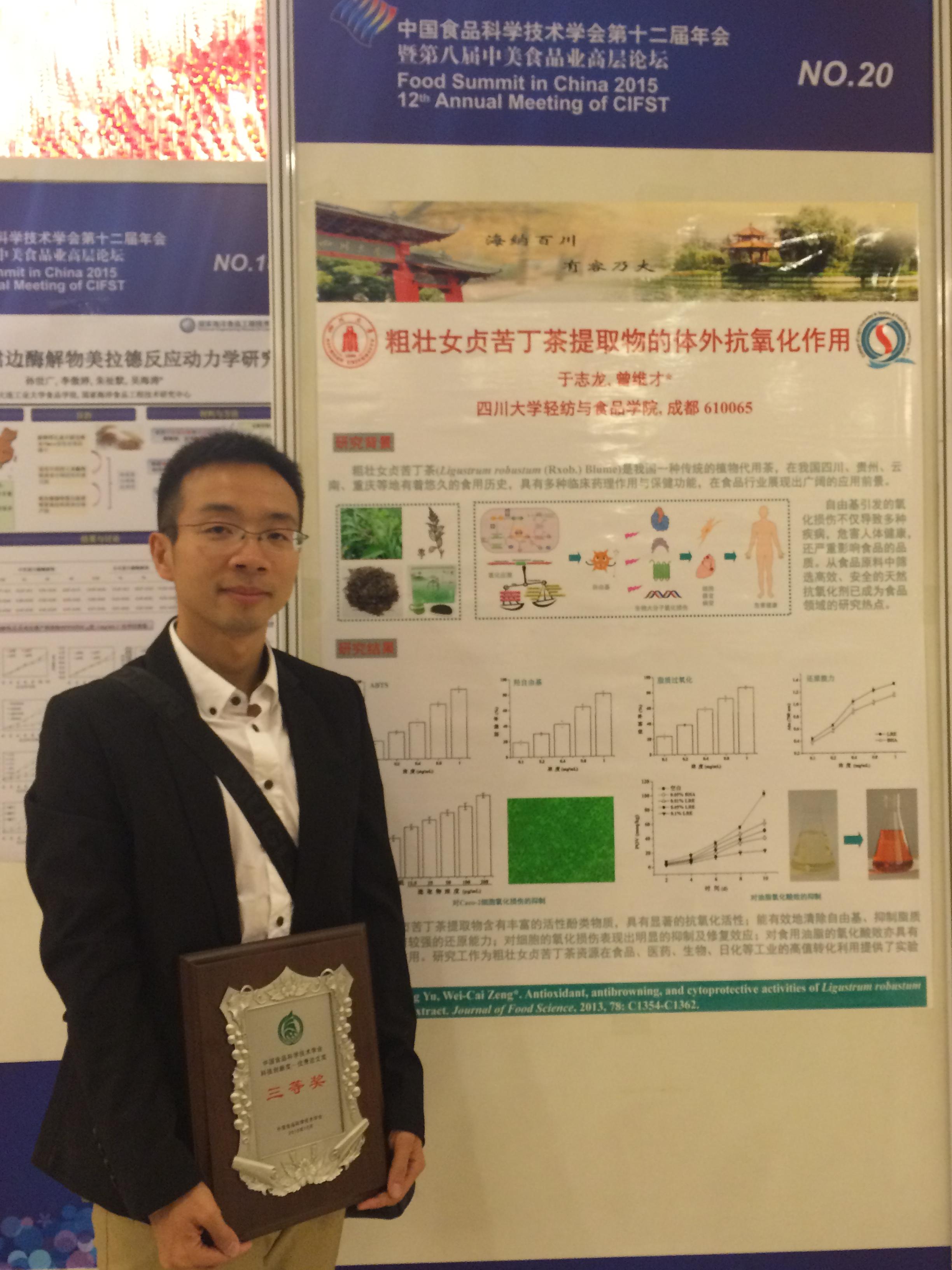公司食品工程系青年教师曾维才老师、张佳琪老师、李欣蔚老师、于志龙博士等赴大连参加了此次会议。会议对中国食品科学技术学会科技创新奖获奖者、第二届杜邦营养与健康两岸员工创新大赛、盼盼食品杯烘焙食品创意大赛获奖者进行了表彰。公司曾维才老师的论文《粗壮女贞苦丁茶提取物的体外抗氧化作用》荣获中国食品科学技术学会科技创新奖三等奖。邱琛等同学设计的作品《棋妙》荣获“2015盼盼食品杯烘焙食品创意大赛”三等奖;马健等同学设计的作品《川菇粮》荣获“第二届杜邦营养与健康两岸员工创新竞赛”三等奖;薛凡等同学设计的作品《追“球”》荣获“2015盼盼食品杯烘焙食品创意大赛”优秀奖。特此祝贺!