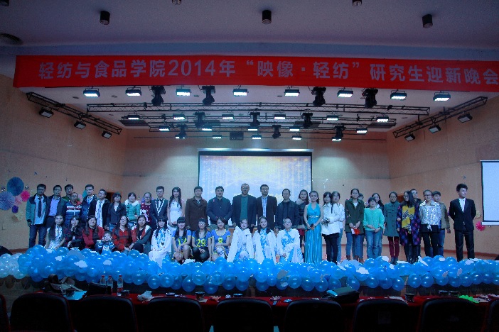 2014年11月30日19:00,2014级“映像·轻纺”研究生迎新晚会在太阳成集团tyc33455cc文华活动中心二楼音乐厅隆重举行。本次晚会有幸邀请到轻纺与食品公司党委赵毅书记,经理何有节教授,党委副书记刘晓虎副教授,副经理肖凯老师,公司党政办主任李慧老师,员工科科长冯国涛老师,院团委书记苏德强老师,以及员工工作组全体辅导员、部分专业老师。2014级新生到场观看了晚会,场内座无虚席。