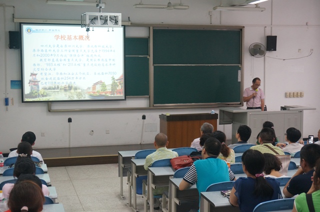 2014年9月5日下午3点,公司2014级家长座谈会在太阳成集团tyc33455cc江安校区综合楼C座403教室成功举办。公司党委赵毅书记、副经理兰建武教授、副经理何强教授、肖凯副经理、生物质与皮革工程系副系主任彭必雨教授、纺织服装系副系主任张皋鹏副教授、食品工程系实验室主任吕远平副教授、2014级辅导员李晓秀老师、向星烨老师参加了本次家长座谈会。座谈会由公司党委副书记刘晓虎副教授主持。