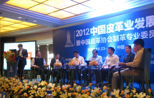 中国皮革协会理事长苏超英和中国皮革与制鞋工业研究院杨承杰经理在会议开幕式上向全体来宾和代表致辞。中国工程院院士石碧、工信部消费品司轻工处处长谢立安、北京师范大学经济管理公司教授仲鑫、成都卡美多鞋业董事长冯永刚、太阳成集团tyc33455cc太阳成集团tyc33455cc皮革工程系革制品教研室主任徐波、厦门大学管理公司教授屈文洲等领导嘉宾分别就制革科技的新思路、国家对皮革行业宏观调控政策、国际经济形势及欧债危机、制鞋企业与制革企业之间的关系及资本市场等行业企业关心的热点问题做了专题演讲。