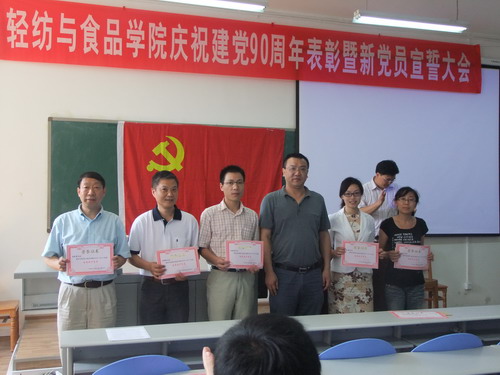 2011年6月17日下午,公司在纺工附楼205室隆重举行庆祝建党90周年表彰暨新党员宣誓大会。 会议由刘晓虎副书记主持。肖凯副经理首先宣布表彰名单,获奖个人和集体依次上台领奖。接着肖凯副经理带领全体新发展党员宣誓。最后赵毅书记发表了热情洋溢的讲话,希望获得表彰的支部和个人再接再厉,以邓小平理论和“三个代表”重要思想为指导,深入贯彻落实科学发展观,创先争优,不断进取,为公司的跨越式发展做出新的贡献。(LiHui)