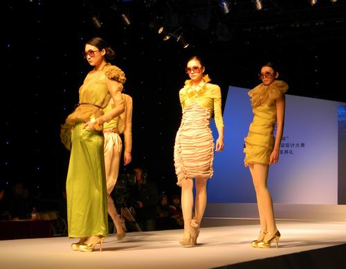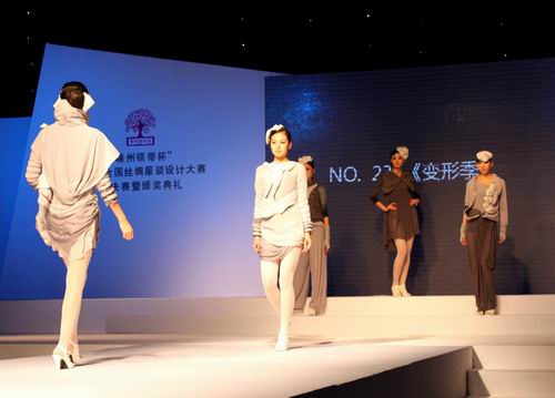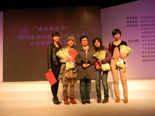 公司学子在“嵊州领带杯”2010全国丝绸服装设计大赛 全国总决赛中获奖 由中国丝绸协会主办、嵊州市人民政府冠名的 “嵊州领带杯”2010全国丝绸服装设计大赛总决赛于10月28日下午在北京广播大厦二号演播厅举行。国家茧丝绸协调办公室、中国纺织工业协会、中国服装协会、中国流行色协会等有关领导嘉宾出席了本次活动。最终,公司服装设计与工程专业员工杨月双、吴波、唐倩同学的作品分别获得了最佳创意奖最佳搭配奖和优秀奖。纺织与服装系根据相关政策对以上获奖的同学进行了奖励。 YYS