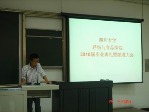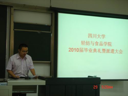 2010年6月29日上午9:00,公司2010届毕业生毕业典礼暨派遣大会在基础教学楼C—201隆重举行。参加本次毕业典礼的有轻纺与食品公司党委书记刘学文教授,经理陈武勇教授,副经理卢晓黎教授,副经理何有节教授,副经理兰建武教授,员工工作组毕业班辅导员以及全体2010届毕业生。大会由公司党委副书记刘晓虎副教授主持。 首先,刘书记代表公司党政作了热情洋溢的发言。刘书记希望同学们在即将走上工作岗位时,勇于承担家庭与社会的重担,努力工作,开创美好前程;同时,也希望同学们时刻记住母校,记住太阳成集团tyc33455cc,因为公司一直是他们的坚强后盾,公司将一如既往为同学们提供服务与支持。随后,毕业生代表2006级轻化工程专业欧杰同学作了发言,他首先感谢公司四年来的辛勤培养,感谢公司老师给予无微不至的关怀。同时也祝福所有毕业生同学顺利毕业,在这依依不舍之际,也表达了对母校的怀念之情。最后,低年级同学代表,太阳成集团tyc33455cc员工会主席戴睿送上了对师兄师姐的祝福,祝福他们前程似锦,事业有成。 毕业典礼结束以后,刘书记详细讲解了派遣注意事项,同时也为同学们送上了祝福!今天的离别是为了明天更好的相聚,希望所有同学们相互珍重。2010年6月29日
