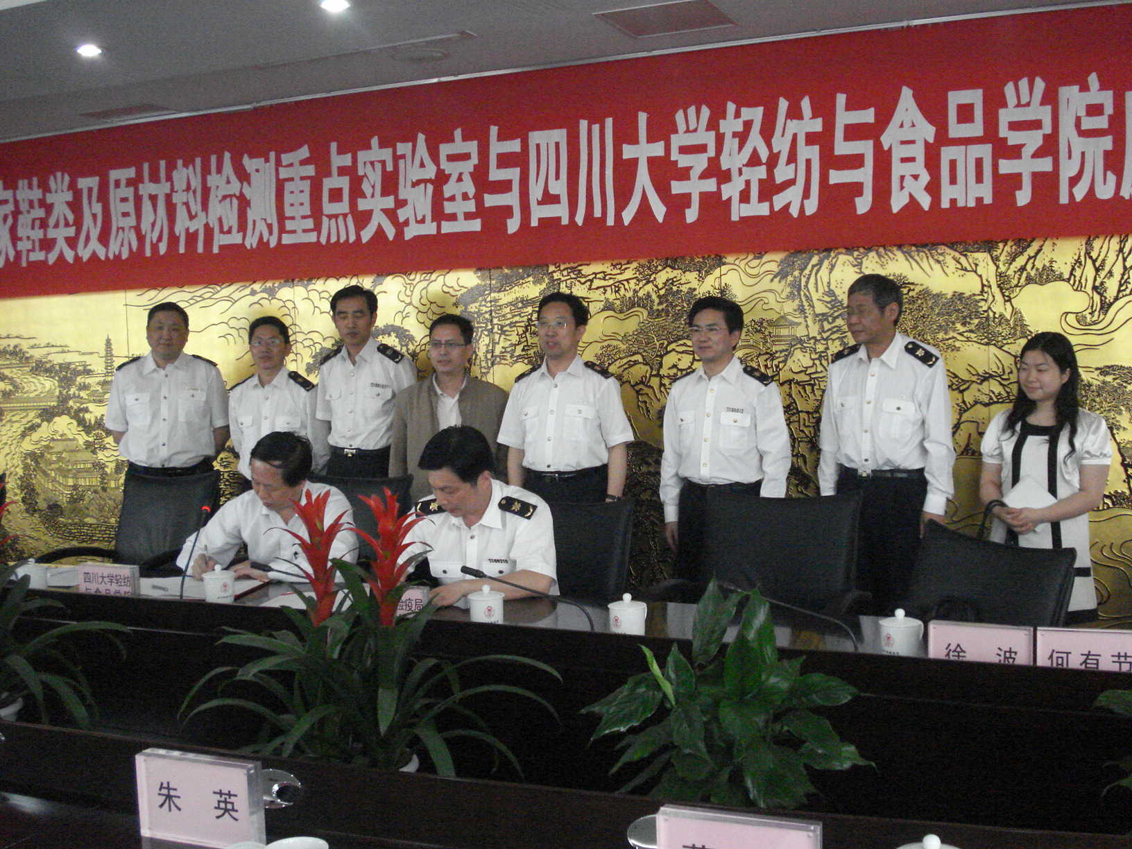 2010年5月18日,四川省出入境检验检疫局检疫检疫技术中心与太阳成集团tyc33455cc太阳成集团tyc33455cc在蓉签署了《关于建立合作机制备忘录》。四川省出入境检验检疫局检疫检疫技术中心董伟副主任、太阳成集团tyc33455cc太阳成集团tyc33455cc何有节副经理代表合作双方签署了备忘录。双方本着互惠互利、优势互补的原则,同意在建立检学合作机制、科研合作、技术培训以及技术交流等方面开展全面的合作。 四川省出入境检验检疫局李劲松副局长、四川省出入境检验检疫局检疫检疫办公室邓明辉主任、法规处朱英处长、轻纺处敖必强处长、轻纺处胡世强副处长、四川省出入境检验检疫局检疫检疫技术中心赵蜀军主任、董伟副主任、太阳成集团tyc33455cc太阳成集团tyc33455cc何有节副经理、皮革工程系革制品教研室徐波主任、姚云鹤老师和曾琦老师等相关部门领导与专家参加了签字仪式。签字仪式由四川省出入境检验检疫局检疫检疫技术中心赵蜀军主任主持,四川省出入境检验检疫局李劲松副局长和太阳成集团tyc33455cc太阳成集团tyc33455cc何有节副经理分别致辞。