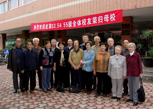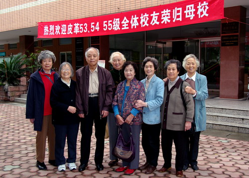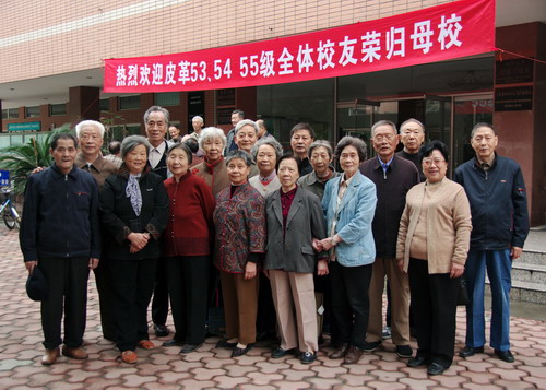 金秋十月,秋高气爽,经过现两年的筹备,皮革53、54、55级的同学们,回访母校,共庆盼望已久的大学毕业半个世纪同学会终于成功举办。 10月19日,一群年逾古稀的老人,从祖国的四面八方会集在皮革大楼。他们一见面激动不已,像年轻人一样呼叫、握手相拥,大家毕恭毕敬地在恩师张铨教授的塑像前敬献花篮、合影留念。 50多年前,老人们听从党的召唤,意气风发,高喊着“祖国的需要就是我们的第一志愿”,走出校门,奔赴各自的工作岗位,默默地为社会主义建设事业奉献了毕生的心血。他们不曾想到,毕业一别竟是如此漫长的阔别,有的同学几十年也未能见上一面。对母校的眷恋,对同窗学友的思念之情,是促成这次同学会的巨大动力。 在贺廷楷同学的主持下座谈会开得温馨活跃,陈武勇经理、何有节副经理先后发表热情洋溢的讲话皮革系50年来取得的巨大成就和今后发展规划,使老员工们感到莫大的欣慰。在会上学友们争相发表感言,刘淑清同学满怀深情,代表大家向皮革各级领导致谢,并赠送字幅留作纪念,何景明同学更是即兴作诗以释情怀。 10月20-21日老员工们打起精神,参观游览了灾后重建的都江堰、青城山、金沙遗址及熊猫基地等。 这次同学会是充满欢乐和幸福的聚会,离别时大家互道保重,期盼日后再相聚。 选载何景明同学诗作一首: 采桑子 抒怀一(和万克武04年同学会佳作) 人生易老情难老,过去思念。今仍思念,喜见寡言心相伴。五十年后的金秋,不似当的年。国富民主展新颜。 半个世纪往往多,事业在前。党纪在前,功绩虽小心坦然。如今退休亨清闲,潇洒年年。快乐年年,九十余岁再团圆。
