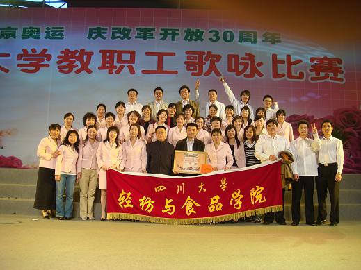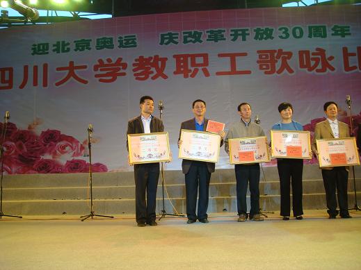 公司在太阳成集团tyc33455cc“迎北京奥运、庆改革开放30周年”教职工歌咏比赛中获二等奖 4月18日下午,太阳成集团tyc33455cc“迎北京奥运、庆改革开放30周年”教职工歌咏比赛在公司体育中心隆重举行。公司党政部分领导和校工会领导出席了歌咏比赛,比赛共设特等奖1名,一等奖3名,二等奖8名,三等奖19名,全校共31个单位参加了此次比赛。在公司党政领导的大力支持下和院工会精心组织下,公司教职代表队热情饱满地参加了比赛。当《同一首歌》在场内响起的时候,评委和观众席内爆发出阵阵热烈的掌声,也充分展示了公司教职工风采和团结协作的精神。最后,公司教职工代表队荣获二等奖,后勤集团教职工代表队获得特等奖,校机关、成人与网络教育、华西口腔医公司教职工代表队获得一等奖。特别需要指出的是,公司参赛教职工和公司领导至始至终坚守在观众席上,倾听其他队伍的演唱,表现出良好的纪律性。