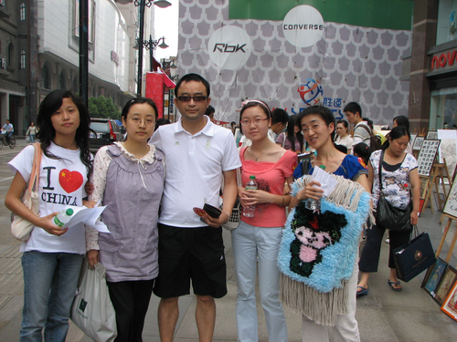 购“福娃”捐助灾区的市民与“福娃”部分作者合影