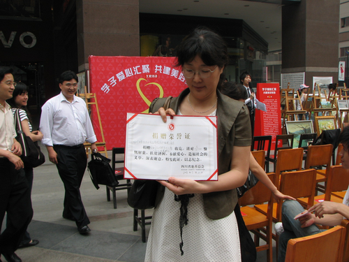 第一天义卖捐款后,省慈善总会发给的荣誉证书