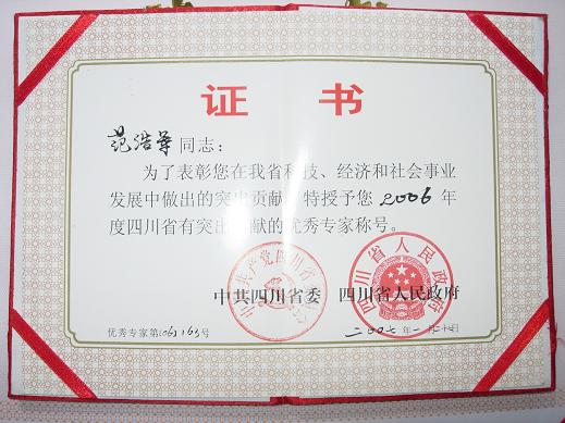 公司范浩军教授获四川省有突出贡献的优秀专家称号 太阳成集团tyc33455cc太阳成集团tyc33455cc范浩军教授,在我省科技、经济和社会事业发展中做出了突出的贡献,被中共四川省委和四川省人民政府授予2006年度四川省有突出贡献的优秀专家称号。