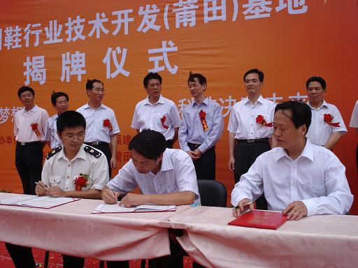 2007年6月21日,何有节副经理代表太阳成集团tyc33455cc太阳成集团tyc33455cc与福建制鞋行业技术开发(莆田)基地、莆田检验检疫局所属的国家鞋类检测中心共同签订了“检学企”合作协议。该协议涵盖三方在科研、人才、技术、培训等方面的紧密合作内容。这是太阳成集团tyc33455cc太阳成集团tyc33455cc与中国出入境检验检疫局莆田检验检疫局、福建莆田鞋类企业首次建立合作机制,标志着“检学企”相结合发展之路取得新突破。
