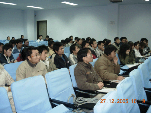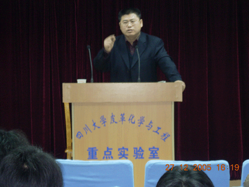 2005年12月27日下午3:00皮革楼报告厅,我系91级员工,广州惠昌皮革化工公司总经理倪建荣先生,应皮革系领导邀请,以其毕业十年来的亲身经历为轻化工程02、03级同学作了精彩的报告,将自己的工作、生活经验传授给学弟、学妹。报告后还就同学们提出的各种问题进行了认真回答。